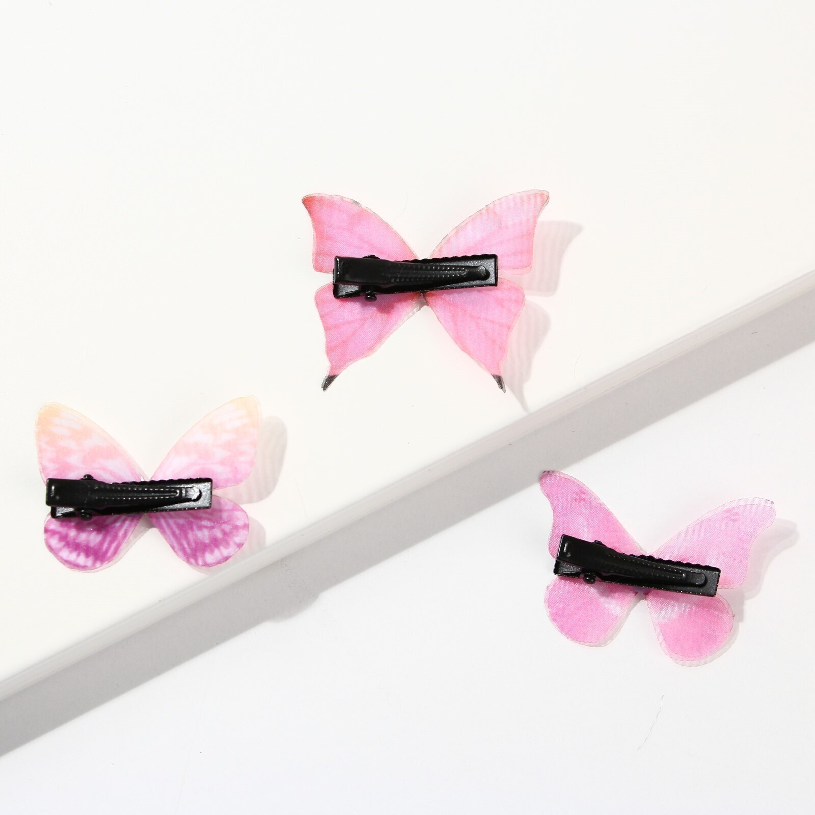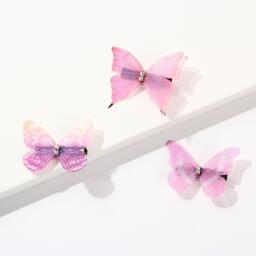 Предлагаем красивые оригинальные наборы заколок с бабочками.Такие нежные и невесомые. Они способны оживить и преобразить любую причёску. Заколки клик-клак для девочки можно использовать для яркой фотосессии, на утренник в детском саду, украшения волос на праздник, на прогулку в парке, просто без повода для поднятия настроения. В каждом наборе 3 бабочки различного дизайна. Бабочка с двойными крылышками выполнена из тонкого материала, при легком дуновении ветра она словно оживает и машет крылышками.Внешне заколка сразу привлекает внимание - очень красивая расцветка крыльев бабочки, и ничего лишнего - сам корпус, на которую крепятся крылышки, не заметен в прическе. Этим достигается эффект того, что бабочка как будто "сидит" в волосах, а не на заколке. Эти очаровательные бабочки украсят прическу как девушки, так и юной модницы и подойдут под любой наряд.