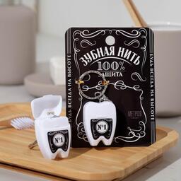 Зубная нить в форме зуба «100% защита», 15 м, 8 х 10,5 см 5256442