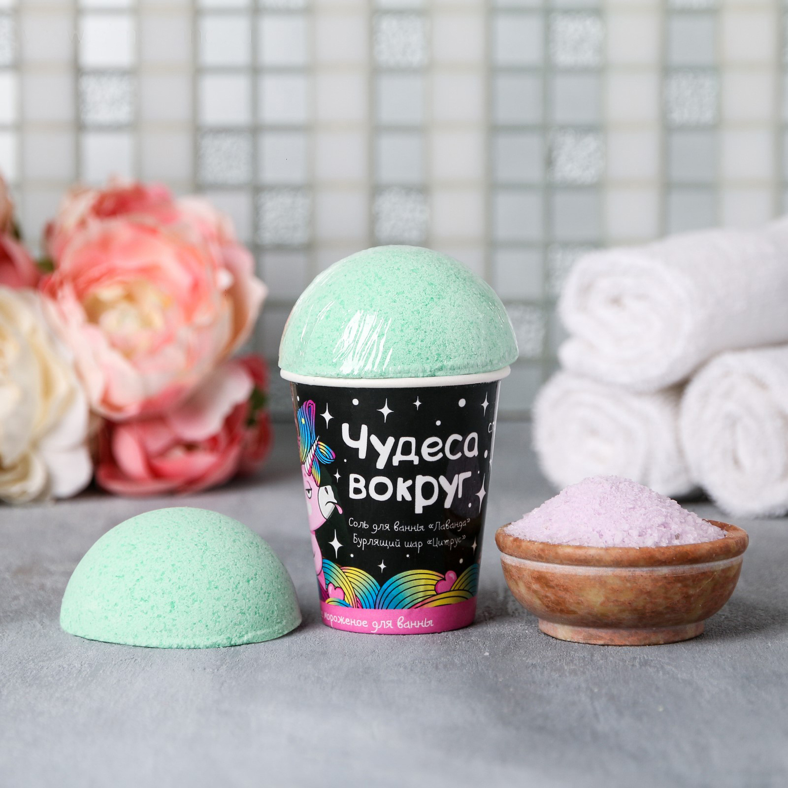 Набор-мороженка «Чудеса вокруг», соль 145 г, аромат лаванды, бомбочка 60 г, аромат цитруса 4729455