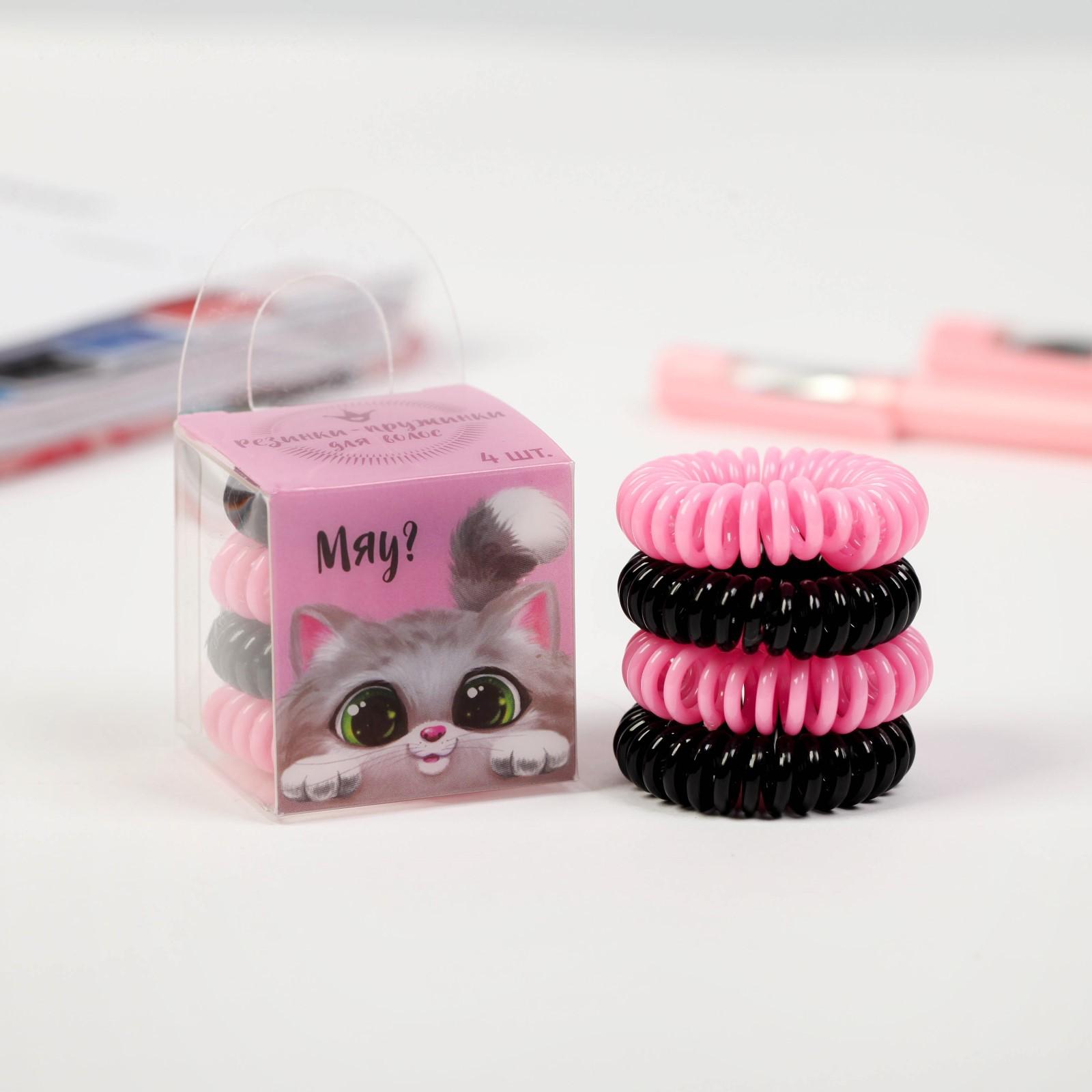 Набор резинок-пружинок для волос «Котик»,4 шт, диам 3,5 см 4773274