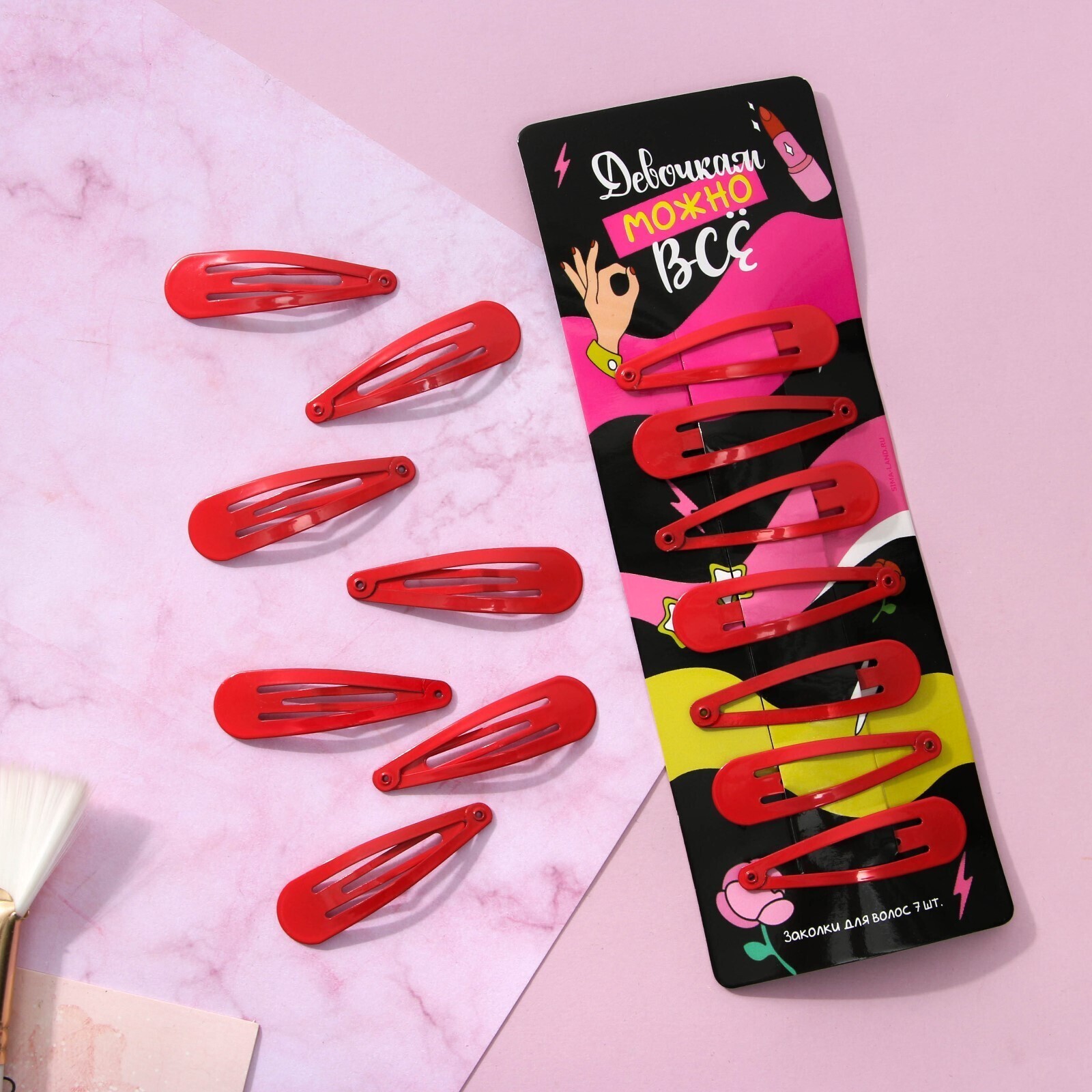 Заколки для волос "Девочкам можно все", размер 5,5 x 1,5 см, 7 шт. 7092579