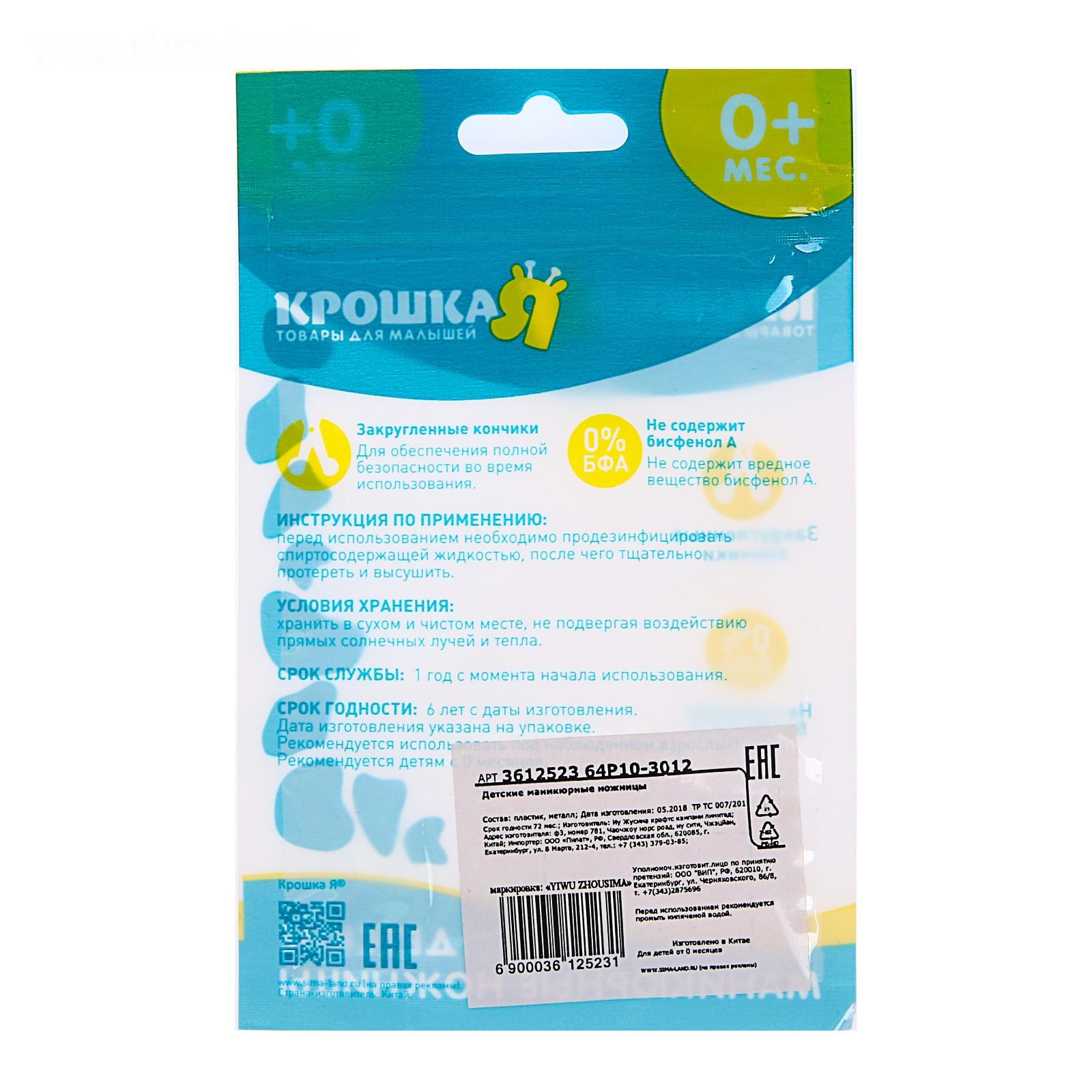 Ножницы детские маникюрные, от 0 мес., , МИКС 3612523