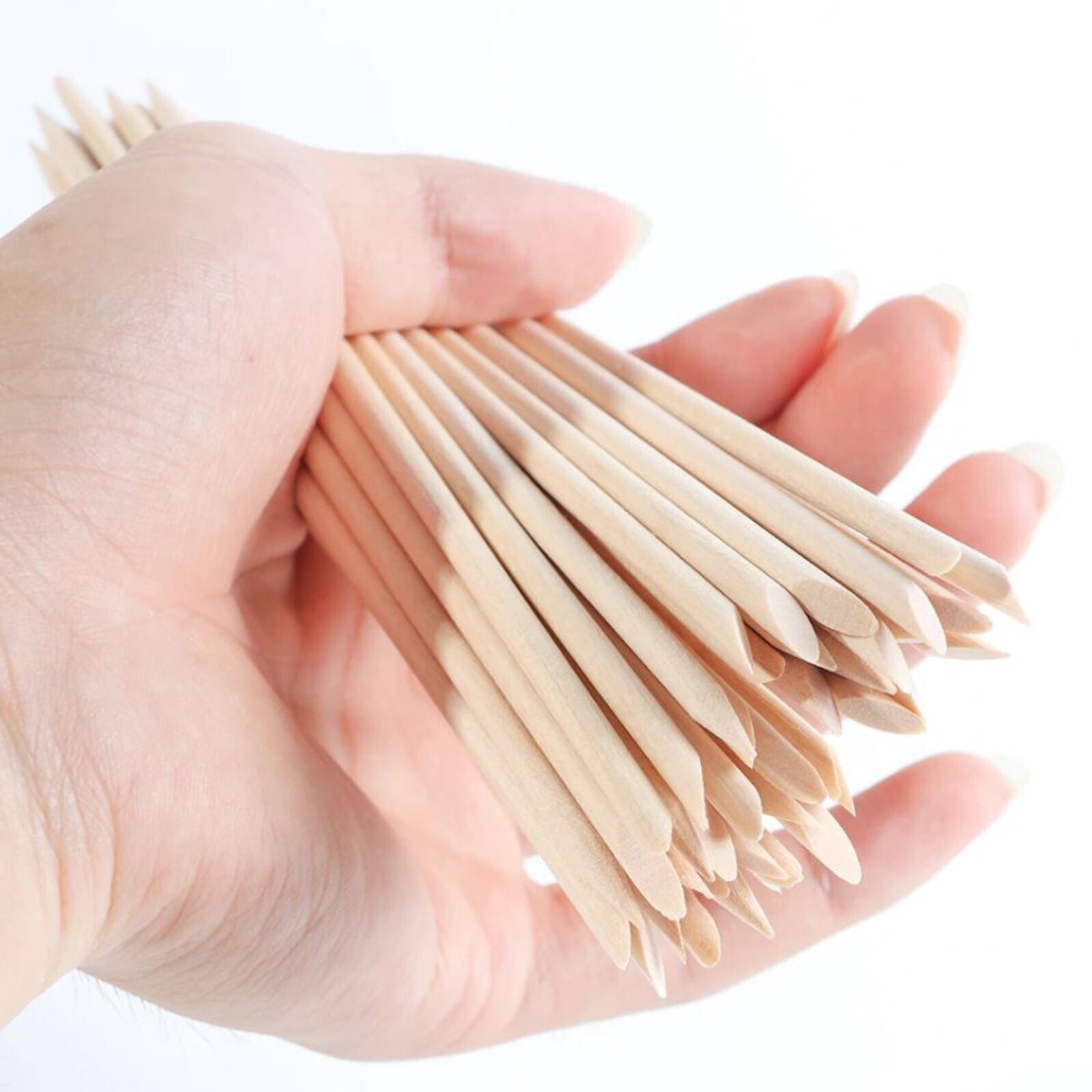 Палочки прочные и не могут травмировать ногтевую пластину. Один кончик остро заточен, второй кончик - скошенный. Все для маникюра и самый необходимый инструмент для кутикулы - апельсиновые палочки.