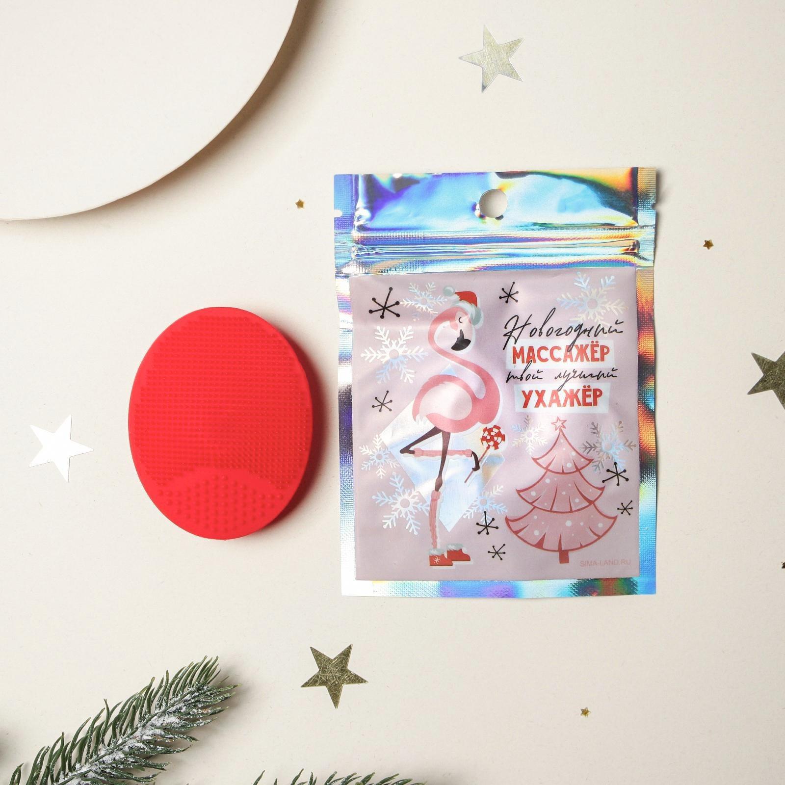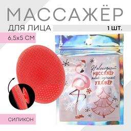 Массажёр для лица в пакете "Новогодний массажёр", розовый 6,5*5 см 6854359