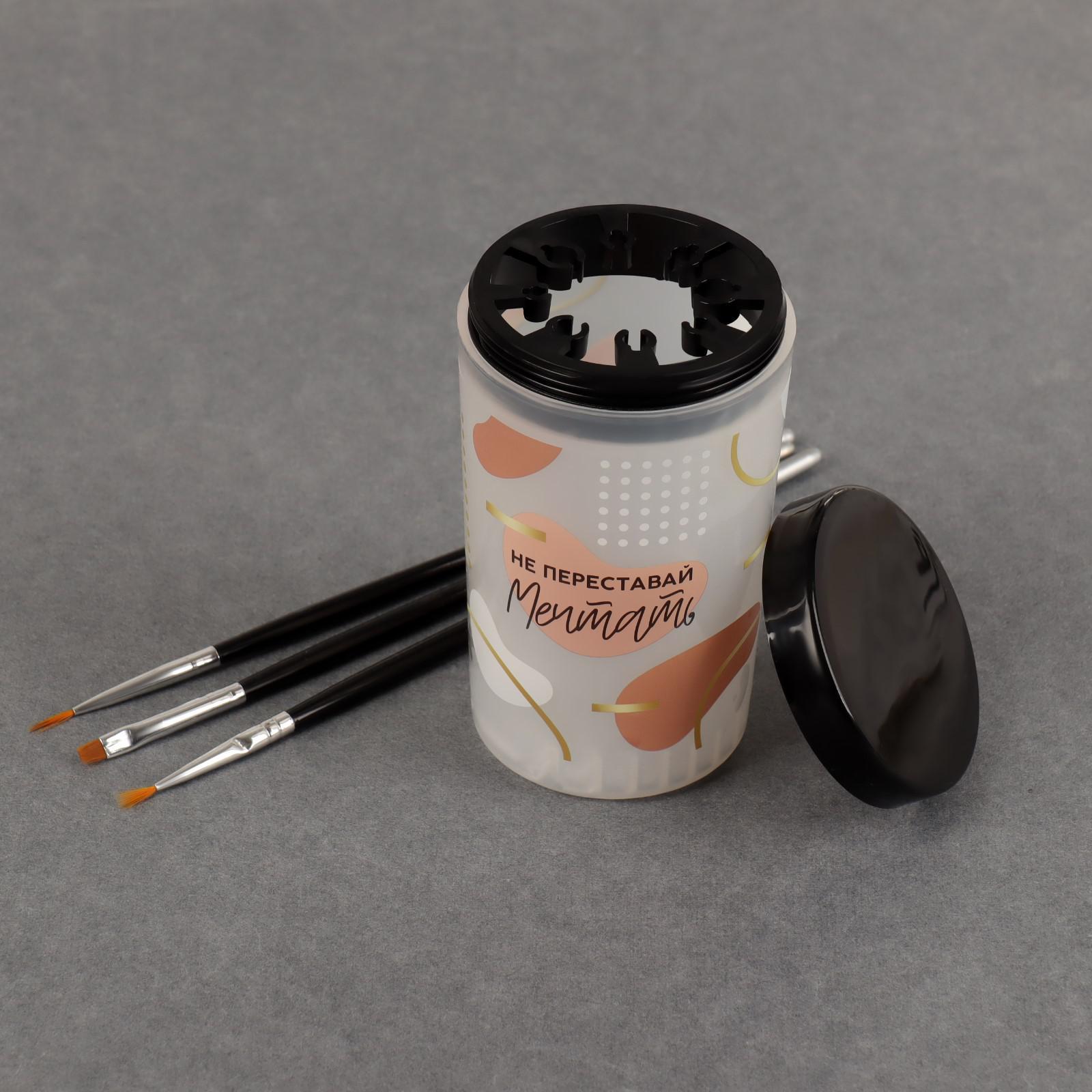 Ёмкость для очистки и хранения кистей «Не переставай мечтать», с держателями и крышкой, 200 мл 6991116