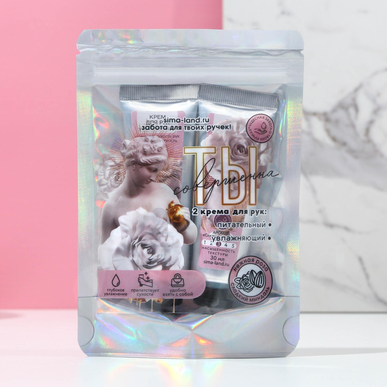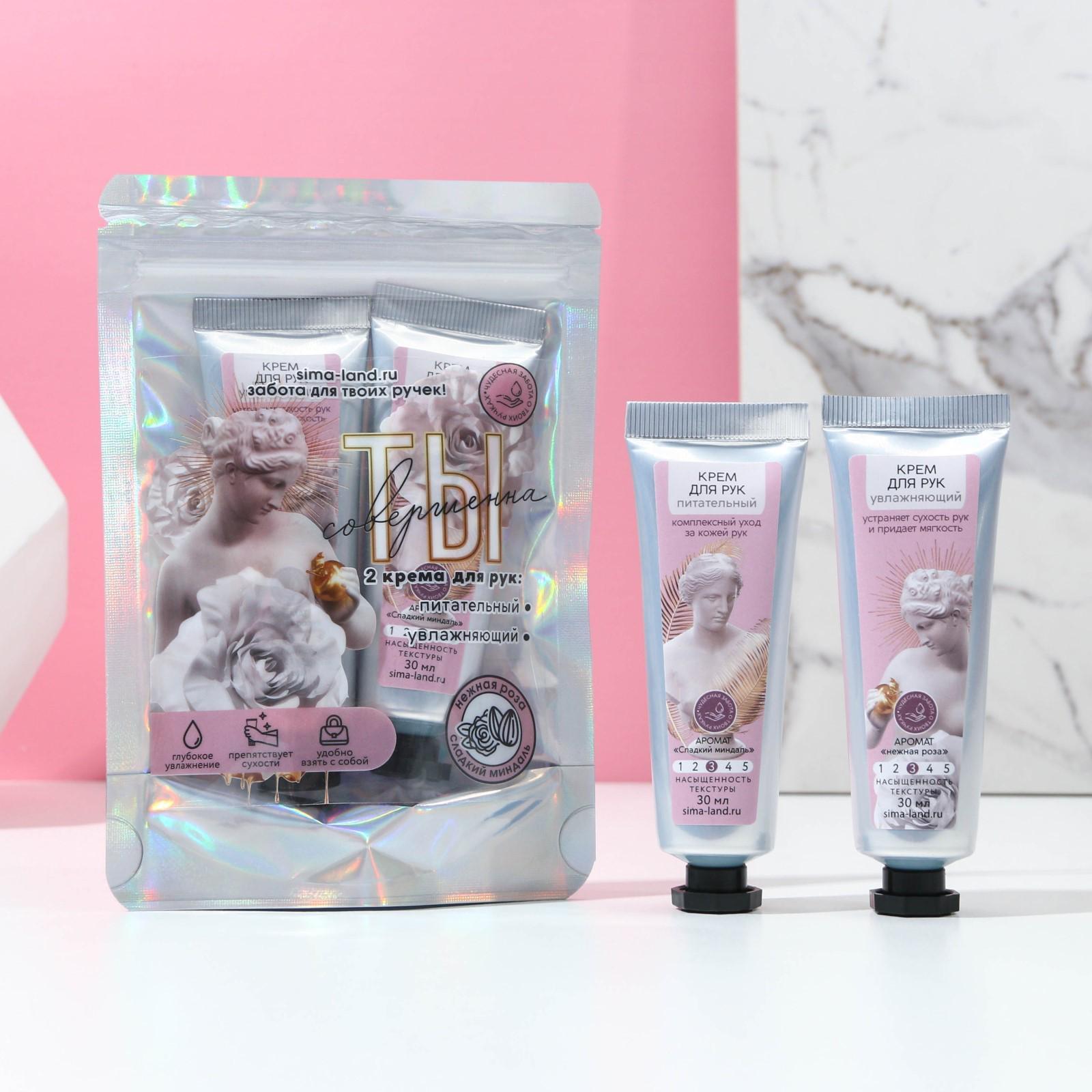 Набор «Ты совершенна!»: 2 крема для рук по 30 мл, миндаль и роза 7803585