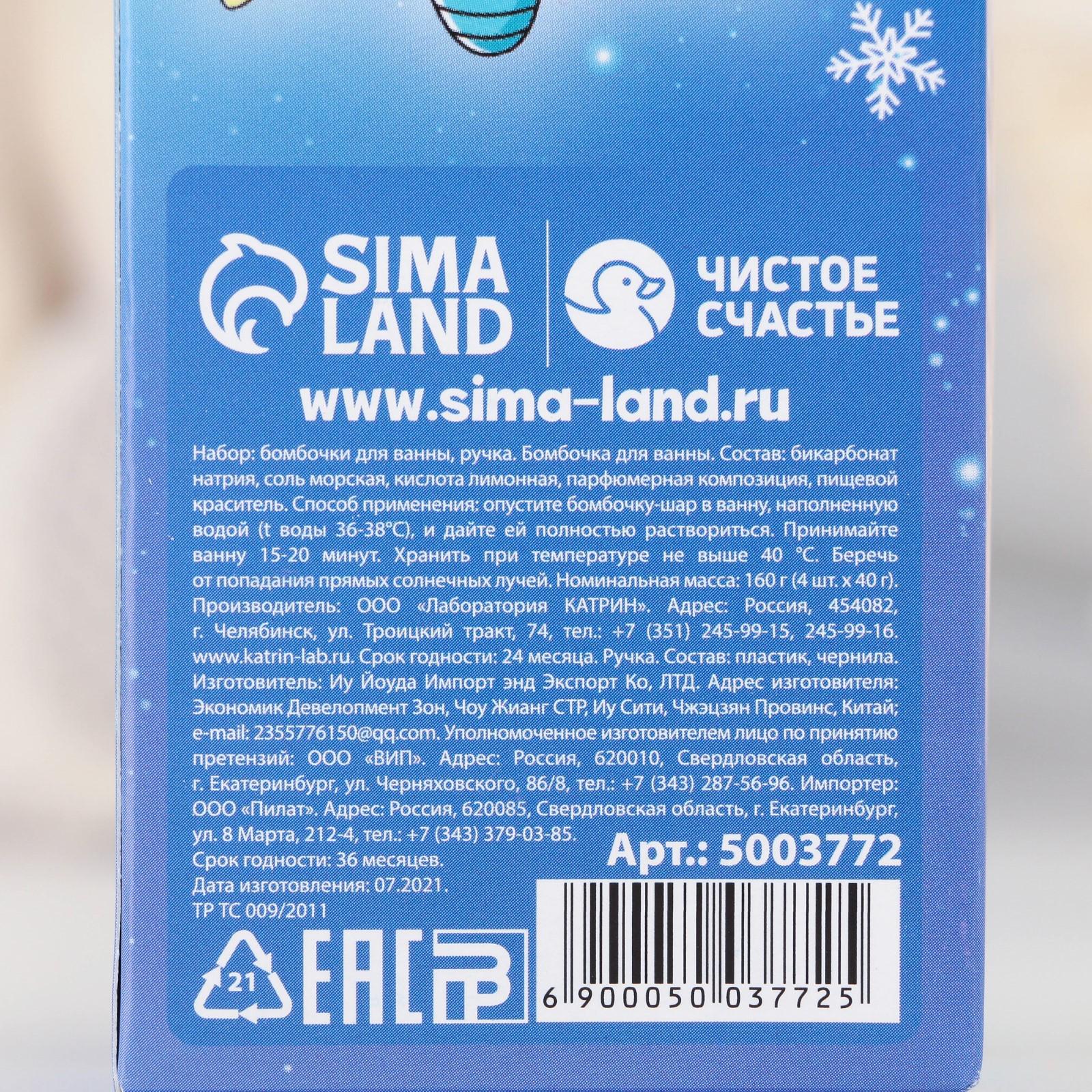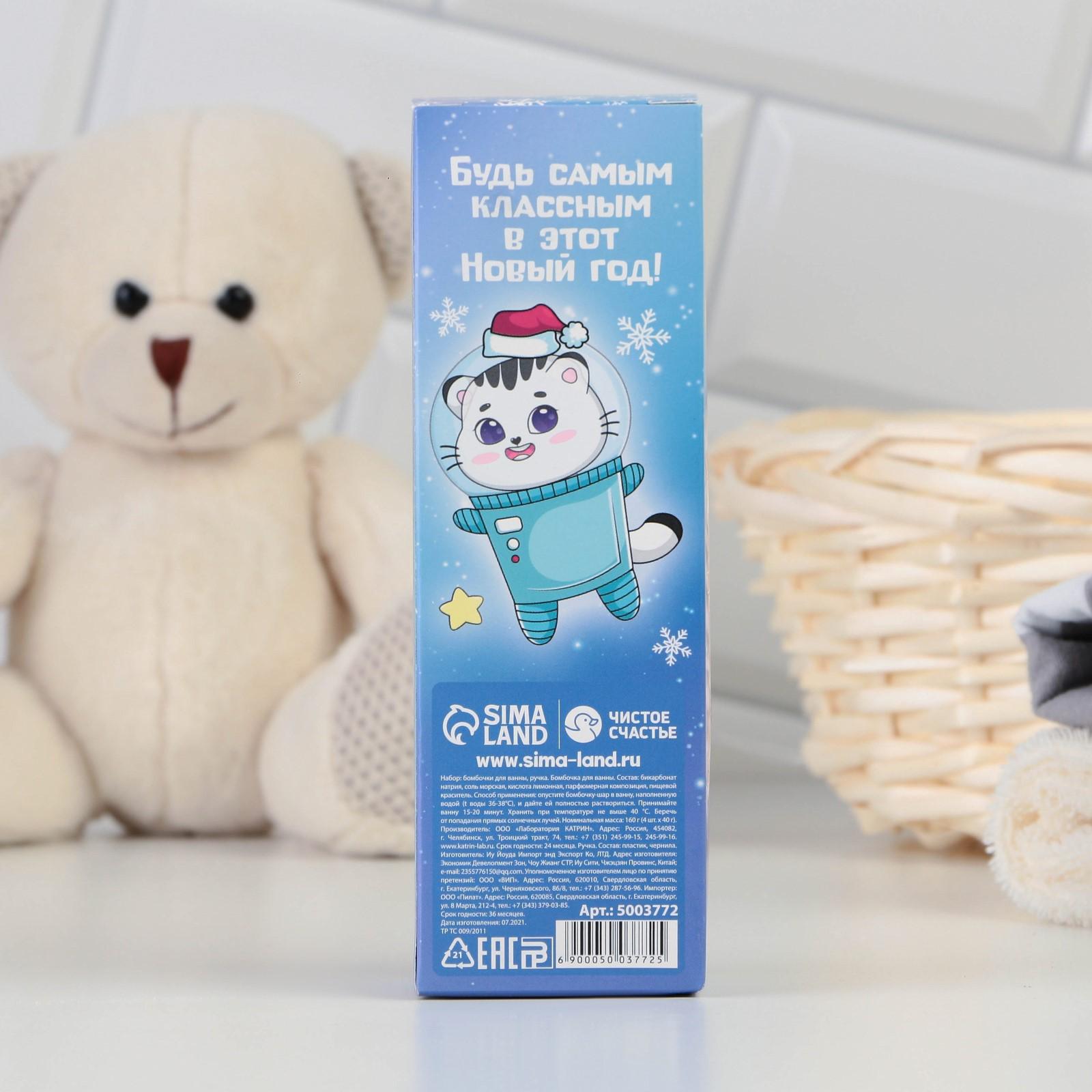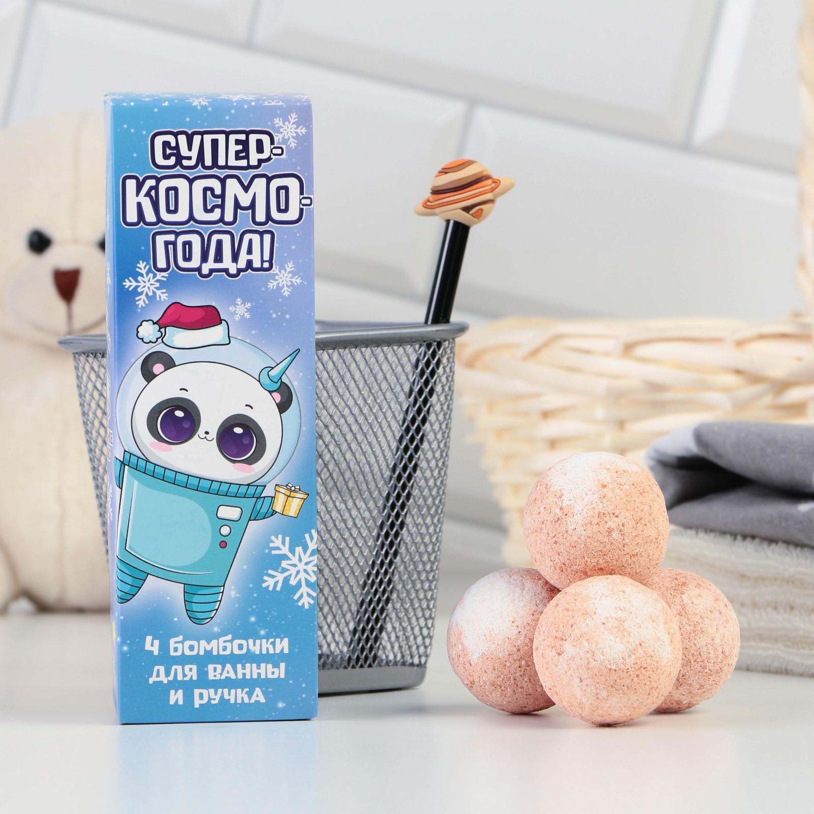 Набор «Супер-КОСМО-года»: бомбочка для ванны 4 шт с ароматом ванили, ручка 5003772