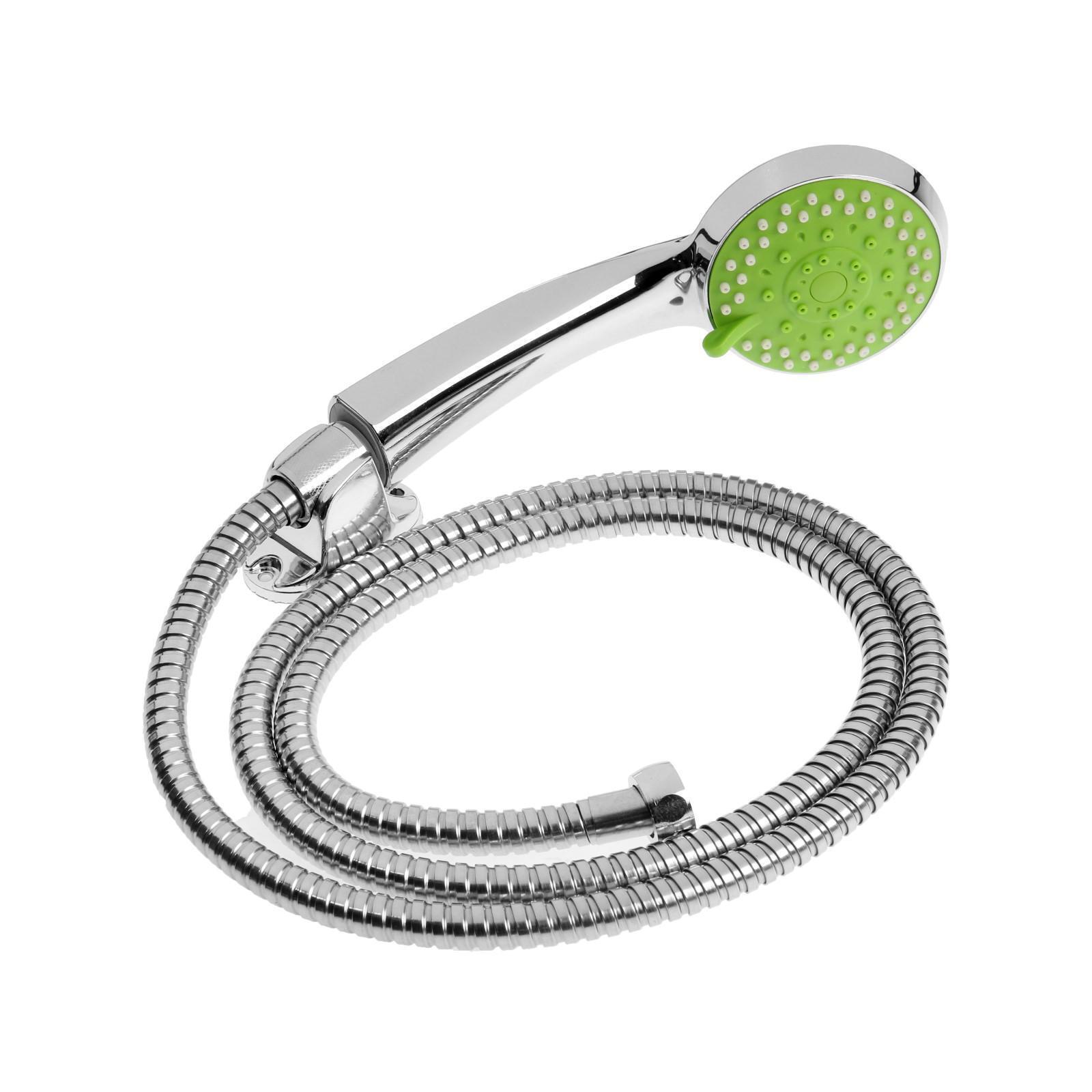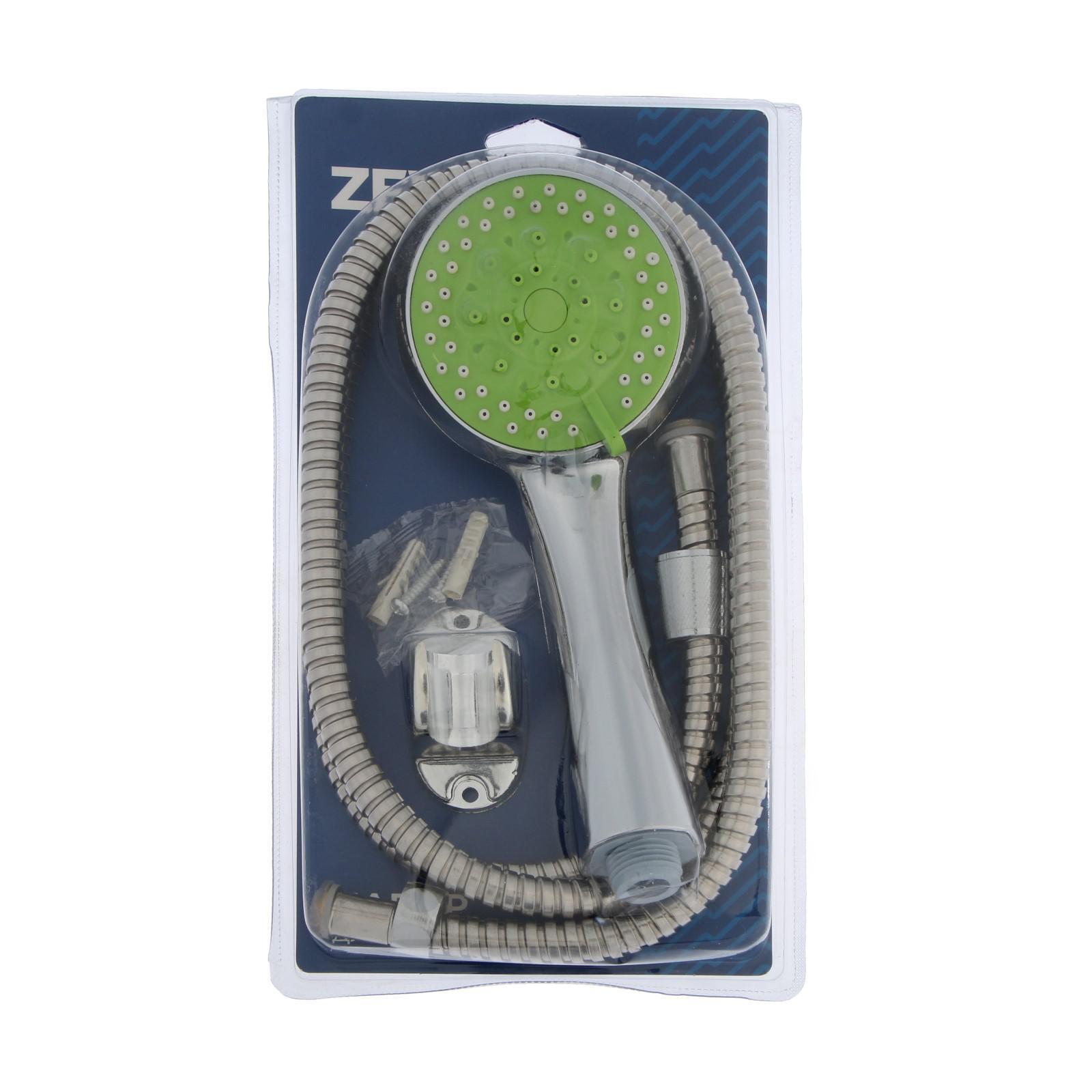 Набор для душа ZEIN Z0605, шланг 150 см, держатель, лейка 5 режимов, зеленый/хром 6931451