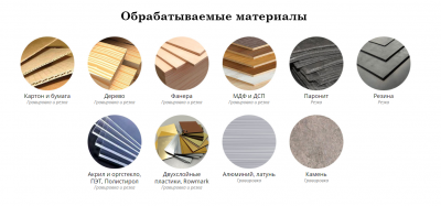 Позволяет проводить манипуляции по резке и гравировке различных материалов в крупных объемах: картон, бумага, дерево, фанера, оргстекло, МДФ, ДСП, резина, паронит, акрил, камень, ПЭТ, пластик, алюминий, латунь. С его помощью дети смогут создавать свои собственные элементы декора, картины, предметы мебели и многое другое.