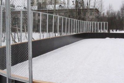 Хоккейная коробка выстраивается из отдельных секций, закрепленных вертикальными стойками. Стойки бетонируются в землю на глубину 0,8 м.