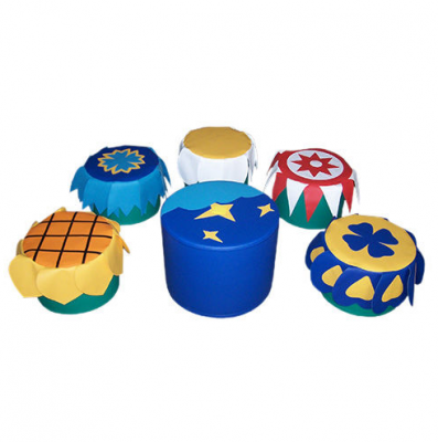 Комплект бескаркасной мягкой мебели "Полянка" включает в себя 5 пуфиков и 1 столик. Может применяться в ДОУ для оснащения игровой комнаты. Оригинальные аппликации, выполнены из винилискожи.
