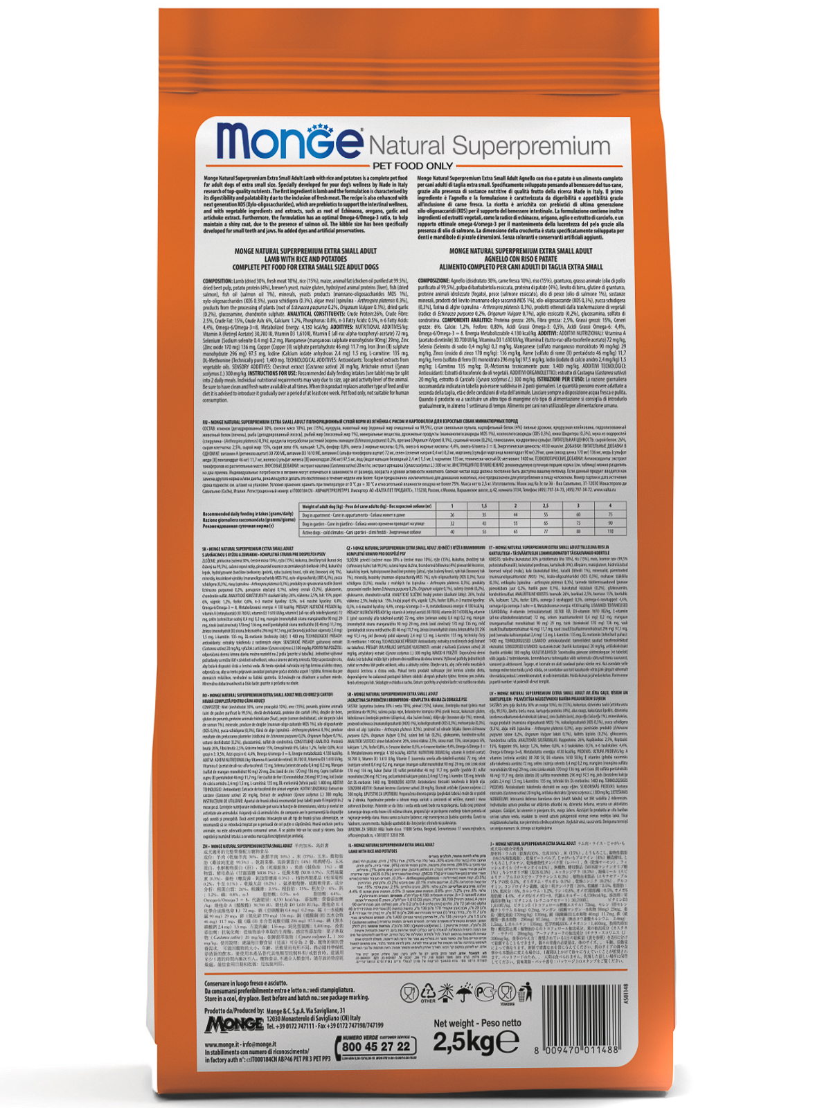 document.addEventListener("DOMContentLoaded", function(event) { $(".hidjedavideo").on("click", function(){ $(this).replaceWith('<div class="responsive-embed widescreen text-center"><iframe height="315" width="100%" src="'+$(this).data("url")+'?autoplay=1&rel=0&loop=1&showinfo=0" frameborder="0" allowfullscreen></iframe></div>'); }); }); Monge (Монж/Монже) Dog Monoprotein (Монопротеин) корм для собак всех пород утка с рисом и картофелем 2,5 кг.Сбалансированное полнорационное питание для взрослых собак всех пород.Линейка сухих рационов со специально подобранными источниками белка.Линейка полноценных сбалансированных рационов для взрослых собак всех пород предназначена для соба склонных к аллергическим реакциям и расстройствам пищеварения.В состав продукта входят отборные источники белка животного происхождения, что позволяет легкоисключить из рациона ингредиенты, вызывающие аллергию. Высокая усвояемость корма гарантирует поступление в организм оптимальногоКоличества питательных веществ, необходимых собакам с чувствительным пищеварением. Оптимальный баланс омега-6 и омега-3 жирных кислот снижает рискразвития воспаления и гарантирует превосходное состояние кожного покрова.Содержание в корме биотина, цинка и высокого уровня линолевой кислоты придает шерсти питомца блеск.СоставПитательная ценность: сырой белок: 25%, сырая клетчатка: 2,5%, сырой жир: 16%, сырая зола: 7%, кальций: 1,7%, фосфор: 1,1%, омега-3 жирные кислоты: 0,5%, омега-6 жирные кислоты: 3,5%, Энергетическая ценность: 4 100 ккал/кг.Добавки/кг: витамин A (ретинола ацетат) 30 770 МЕ, витамин D3 1610 МЕ, витамин Е (альфа-токоферола ацетат) 72 мг, селен (селенит натрия 0,4 мг) 0,2 мг, марганец (сульфат марганца моногидрат 92 мг) 30 мг, цинк (оксид цинка 174 мг) 140 мг, медь (сульфат меди [II] пентагидрат 47 мг) 12 мг, железо (сульфат железа [II] моногидрат 304 мг) 100 мг, йод (йодат кальция безводный 2,4 мг) 1,6 мг, L-карнитин: 100 мг, технически чистый DL-метионин 1500 мг.Технологические добавки:Антиоксиданты: экстракт токоферолов из растительных масел.ВКУСОВЫЕ добавки:экстракт каштана (Castanea sativa) 20 мг/кг, экстракт артишока (Cynara scolymus L.) 300 мг/кг. Смотрите также: Аксессуары, Ветеринарная аптека, Витамины, добавки, Гигиена, Груминг, косметика, Игрушки, Клетки, вольеры, Лакомства, Лежаки, домики, Миски, контейнеры, автокормушки, Намордники, сворки, ринговки, Одежда, обувь, носочки, Переноски, рюкзаки, Рулетки, Сухие корма, Туалеты, пеленки, Шлейки, поводки, ошейники, премиум-класса, для щенков, для взрослых собак, для пожилых собак, 10 кг, 15 кг, с рыбой, с ягненкомТеги товара: для крупных пород, для мелких пород