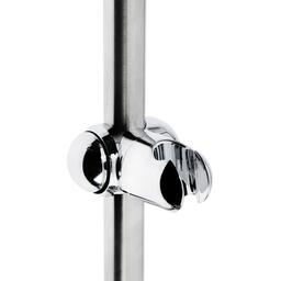 Это вертикальная штанга, на которой установлен кронштейн для ручного душа. Штанга стационарно крепится к стене над ванной при помощи специальных кронштейнов. Модель оснащена удобной пластиковой мыльницей.