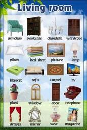 На выбор предоставляется несколько вариантов со следующим содержанием: "Который час", "Неправильные глаголы", "Правила чтения в английском языке", "Предлоги", "Настоящее совершенное время", "Таблица всех времен", "Фрукты, овощи", "Гостиная". Стоимость указана за 1 шт.