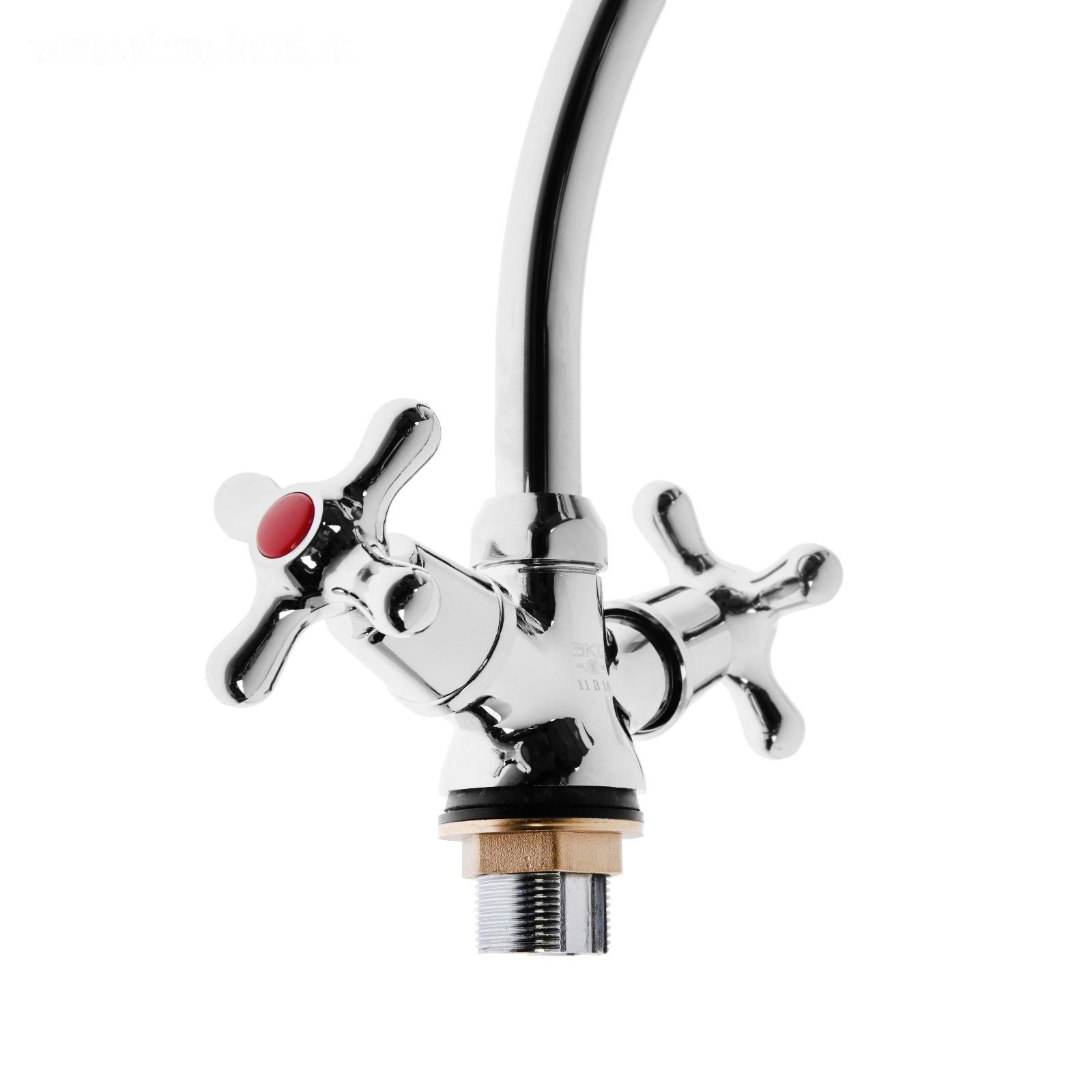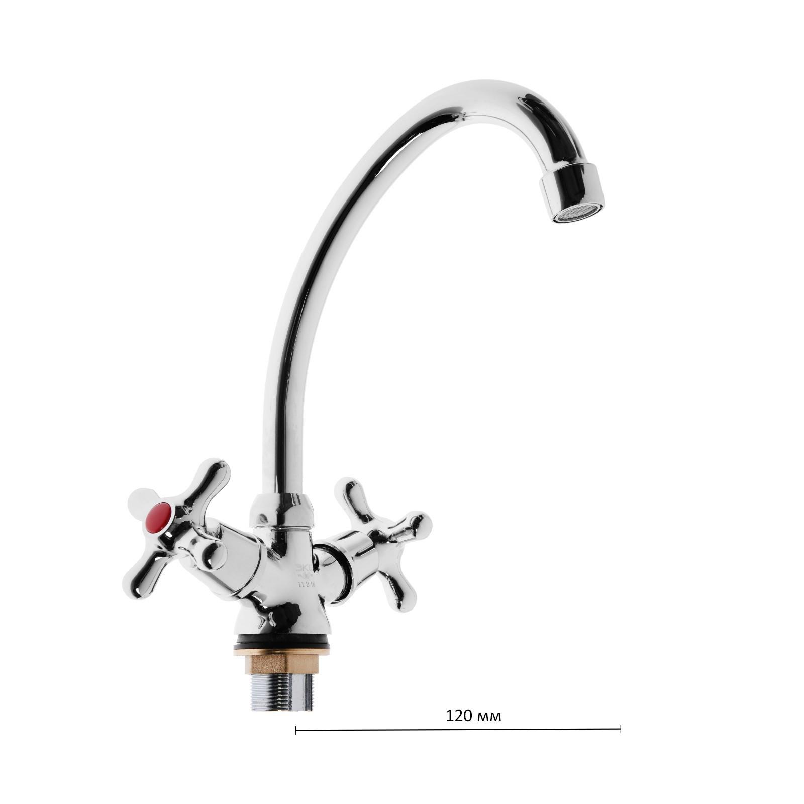 Смеситель для раковины "Центр Сантехники" 11457, двухвентильный, на гайке, высокий излив, хром 3120427