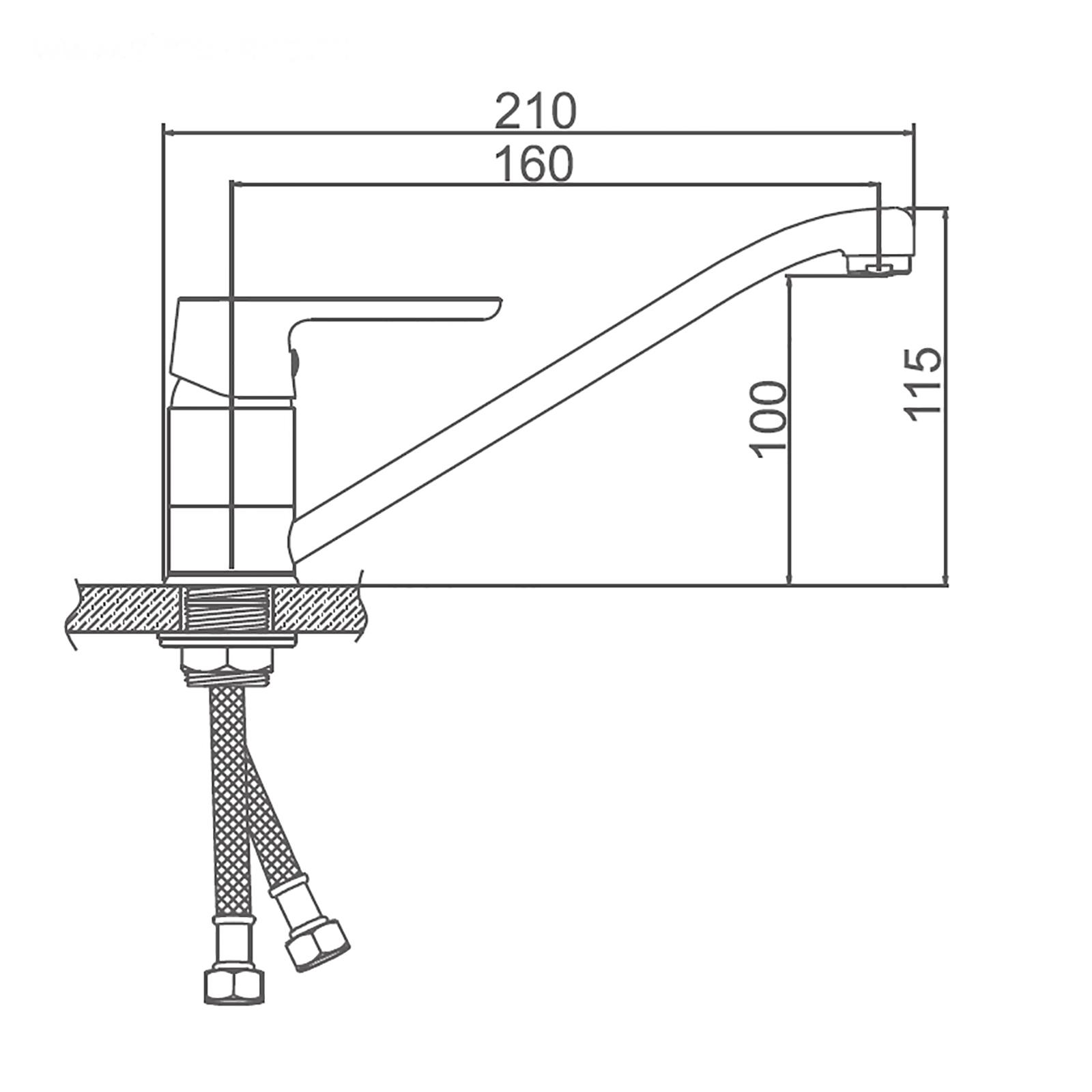 Однорычажный смеситель с коротким изливом предназначен для установки на раковину или мойку. Сантехника выполнена в ярко-зелёном цвете.
