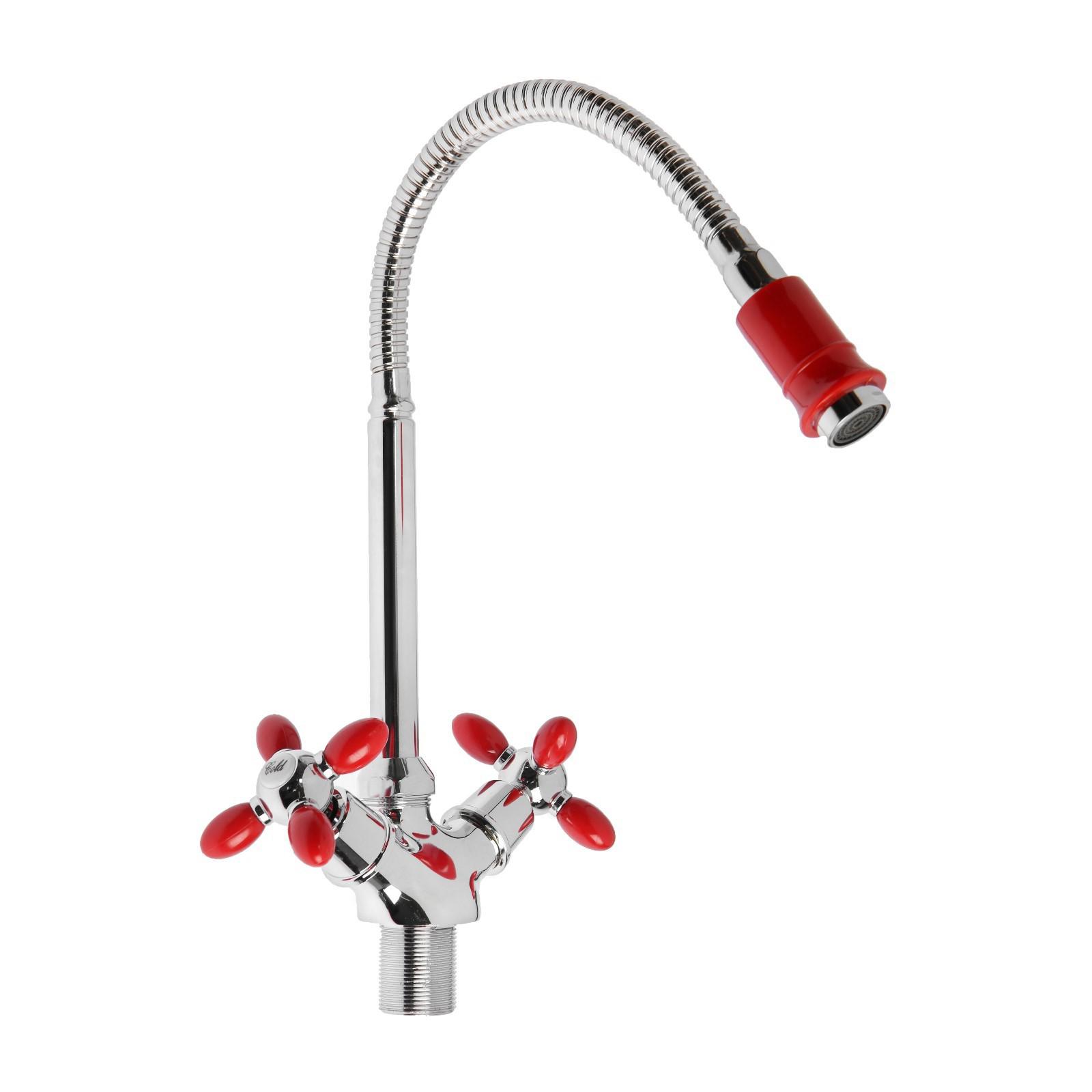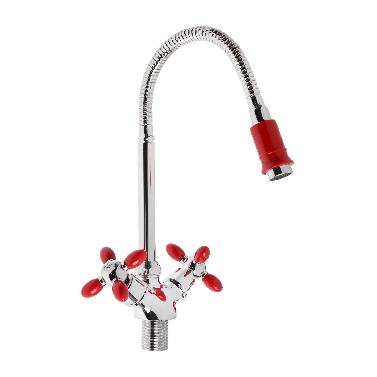Смеситель для кухни ZEIN ZC2027, гибкий излив, кран-букса латунь 1/2", красный/хром 7610316