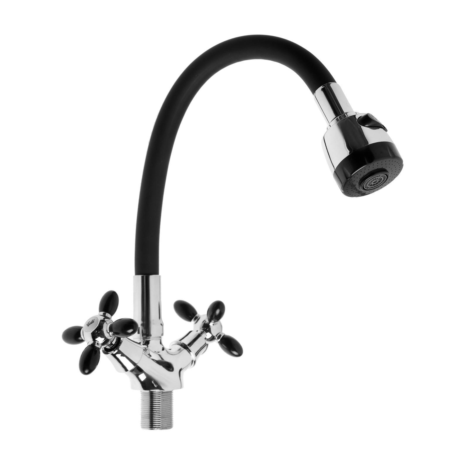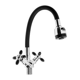 Смеситель для кухни ZEIN ZC2028, гибкий силикон излив, кран-букса латунь 1/2", черный/хром 7610317