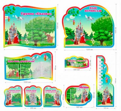 Стенды для группы детского сада с тематическими фонами позволят разместить полезную информацию для воспитанников и их родителей: объявления, списки, ежедневное меню и пр.
