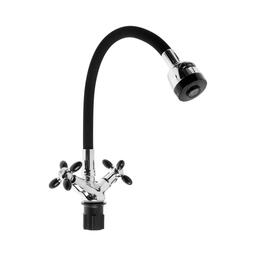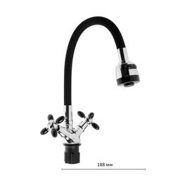 Cмеситель для кухни "Эверест" B57-071F, двухвентильный, гибкий излив, на гайке, хром/черный 6884873