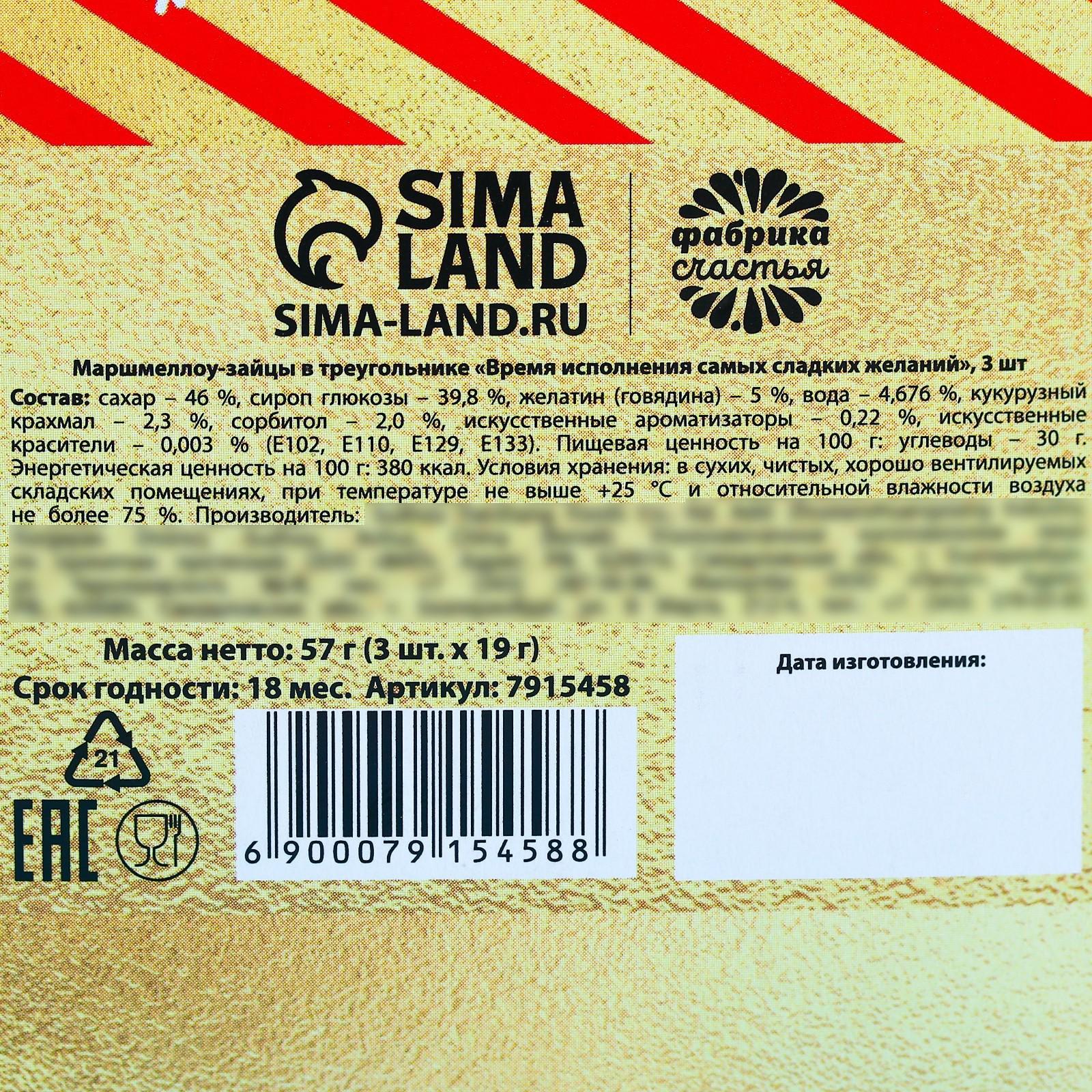 Маршмеллоу-зайцы в треугольнике «Время исполнения самых сладких желаний», 3 шт. х 19 г. 7915458