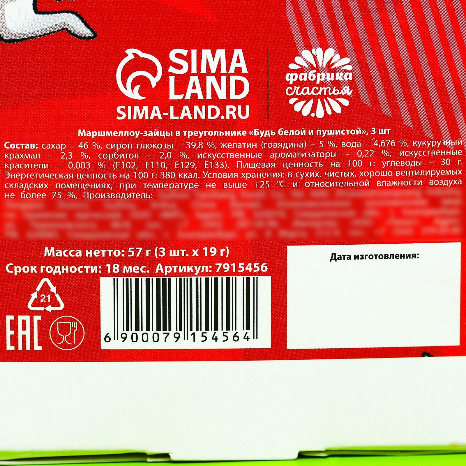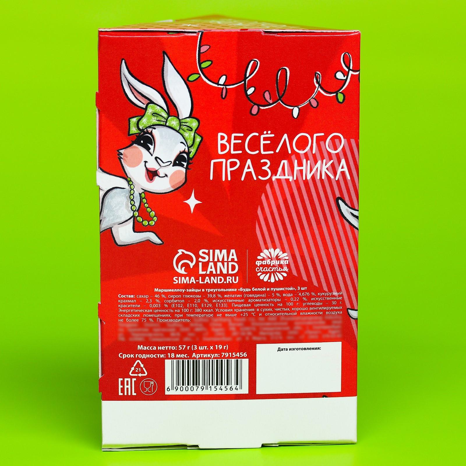 Маршмеллоу-зайцы в треугольнике «Будь белой и пушистой», 3 шт. х 19 г. 7915456