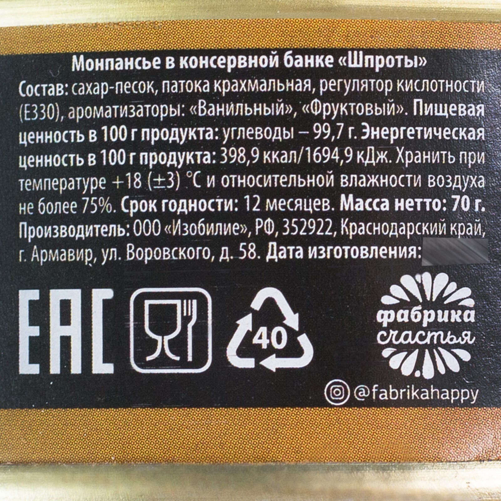 Монпансье «Шпроты»: со вкусом тутти-фрутти, 65 г 4468510