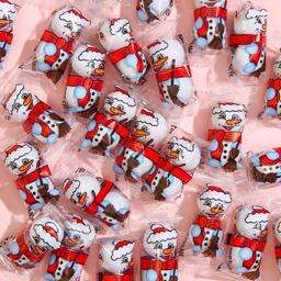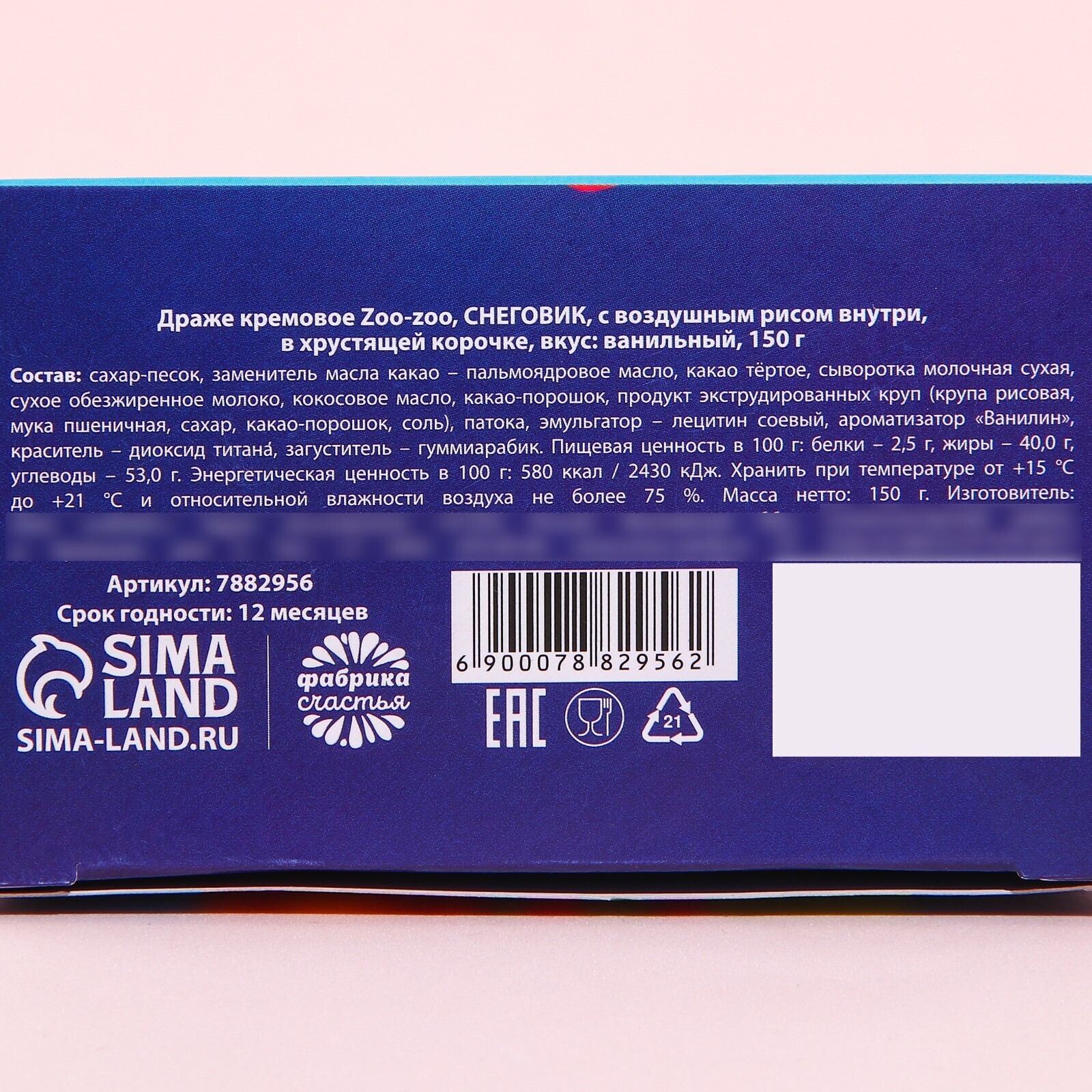 Состав: сахар-песок, заменитель масла какао – пальмоядровое масло, какао тёртое, сыворотка молочная сухая, сухое обезжиренное молоко, кокосовое масло, какао-порошок, продукт экструдированных круп (крупа рисовая, мука пшеничная, сахар, какао-порошок, соль), патока, эмульгатор – лецитин соевый, ароматизатор «Ванилин», краситель – диоксид титана, загуститель – гуммиарабик.