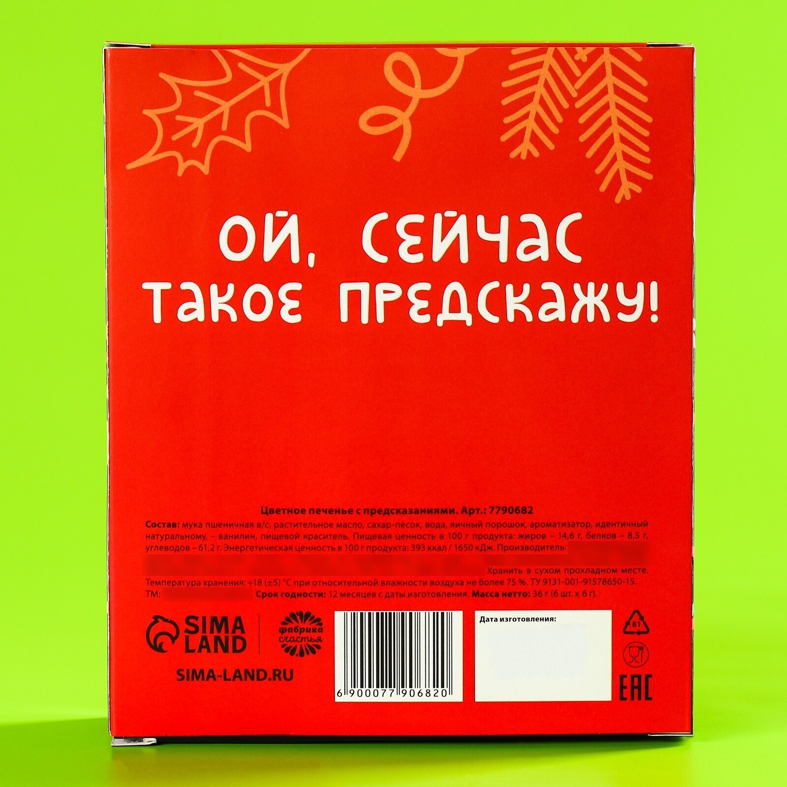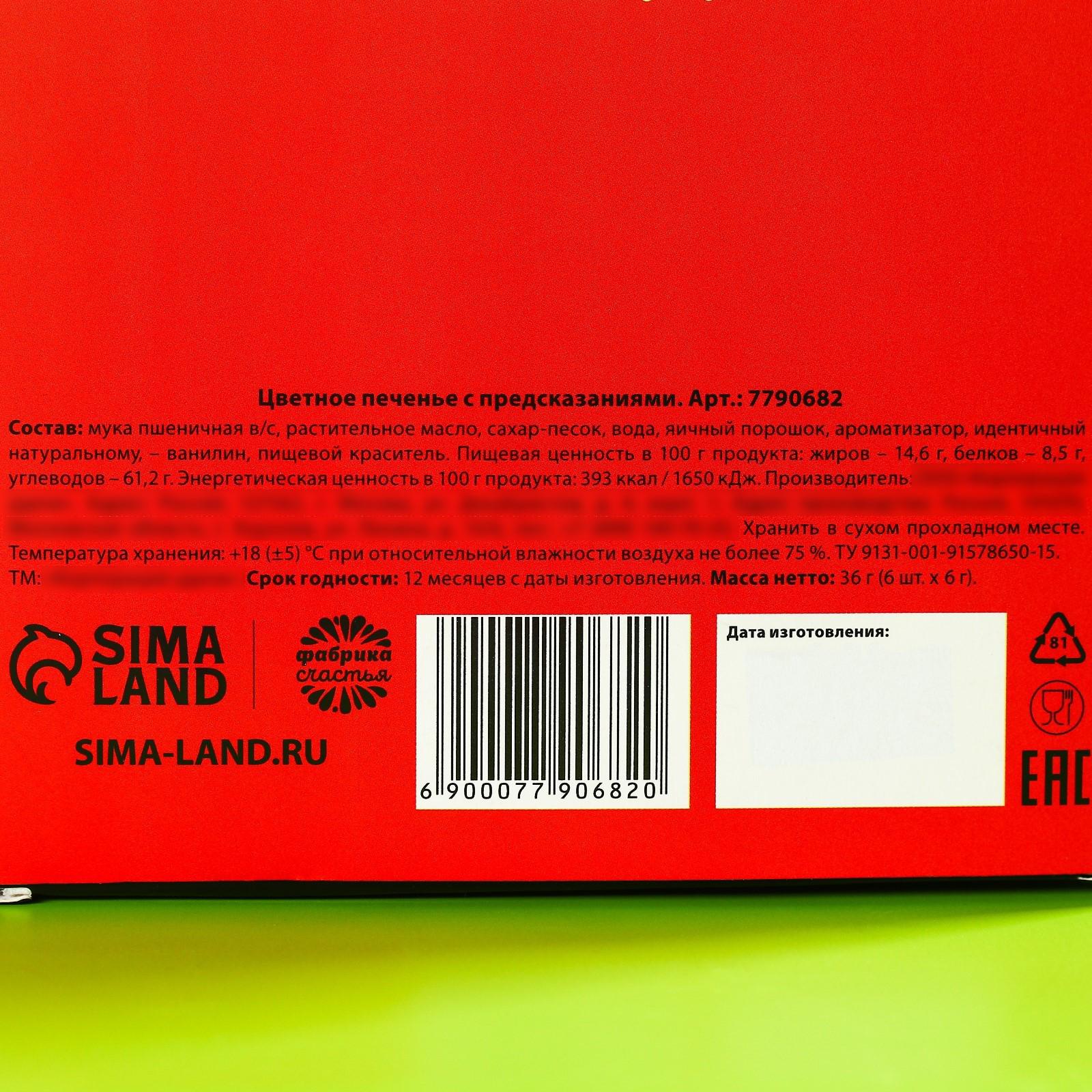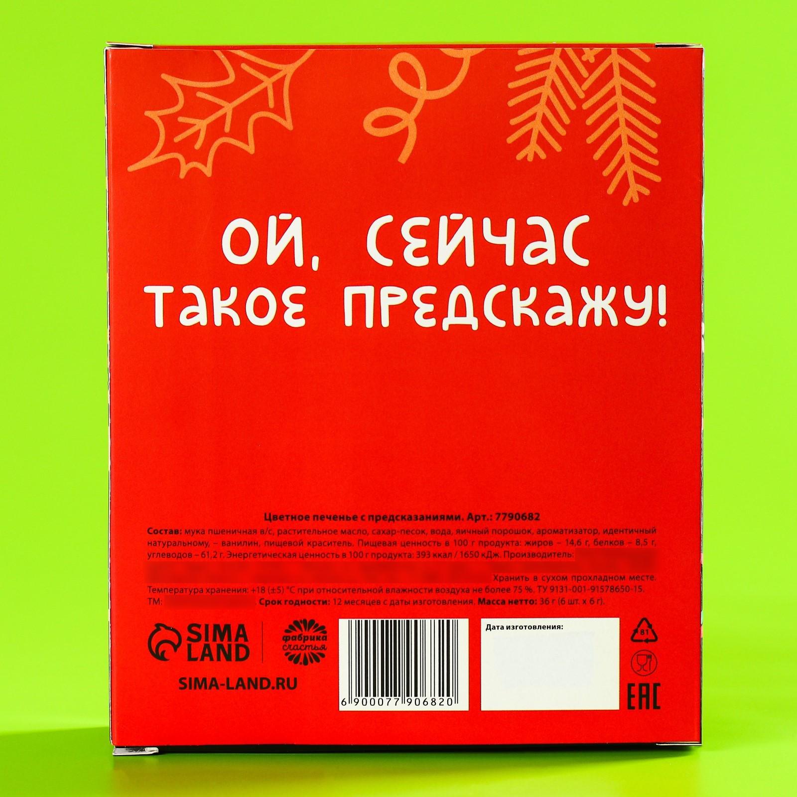 Цветное печенье с предсказаниями «Предсказываю море счастья в 2023», 6 шт. х 12 г. 7790682