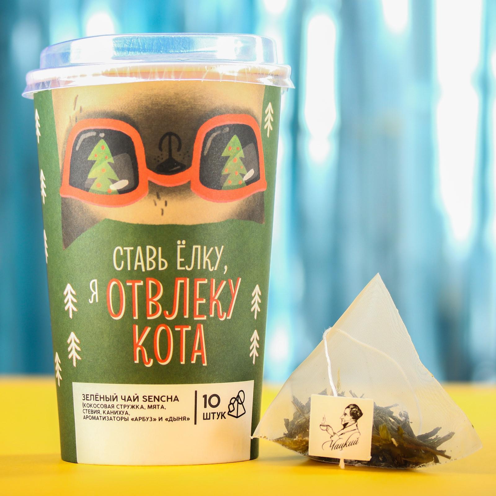 Чай зелёный Сенча «Ставь ёлку, я отвлеку кота», в пирамидках, 10 шт. х 35 г. 7128299