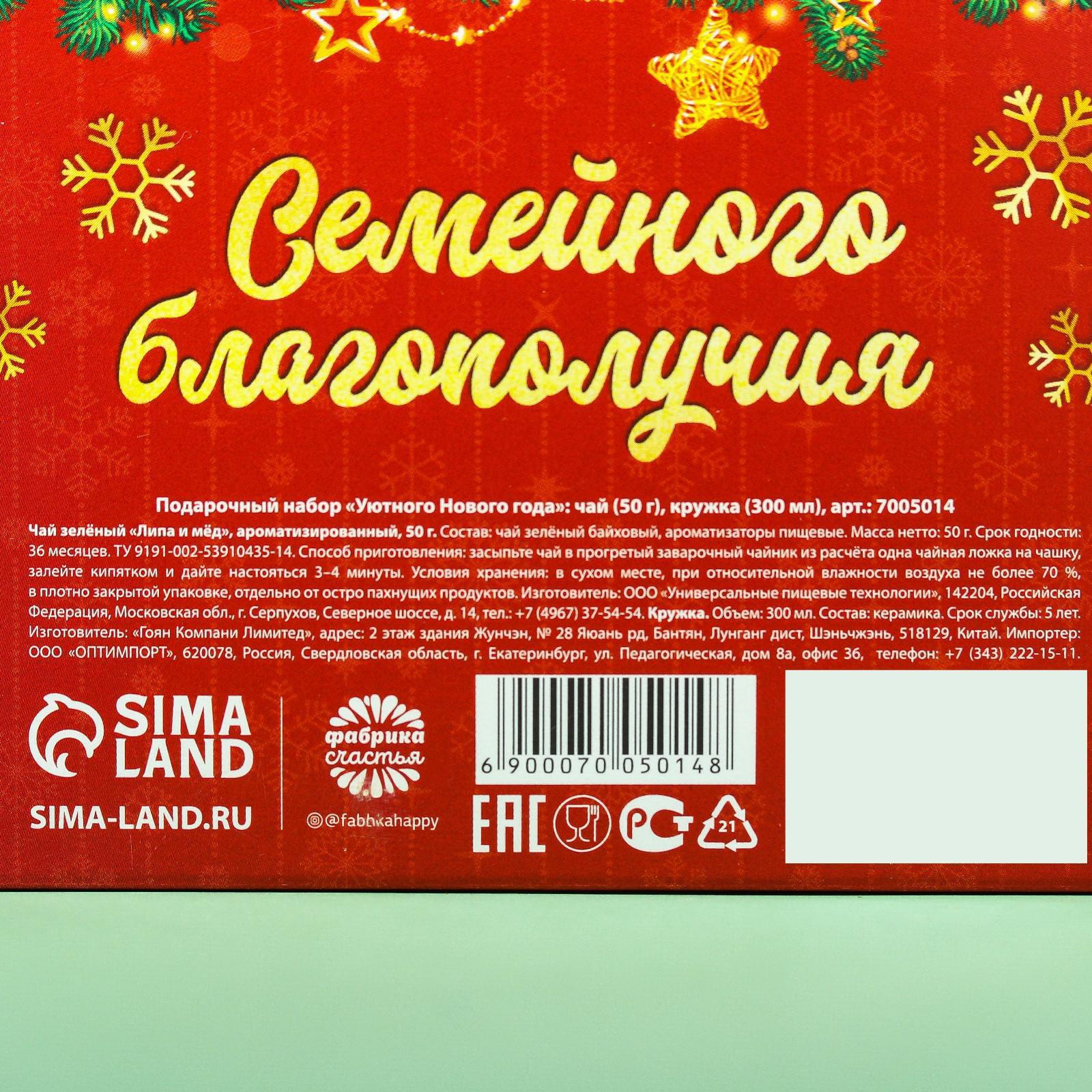 Подарочный набор «Уютного Нового года»: чай "Липа и мёд" 50 г., кружка 300 мл. 7005014
