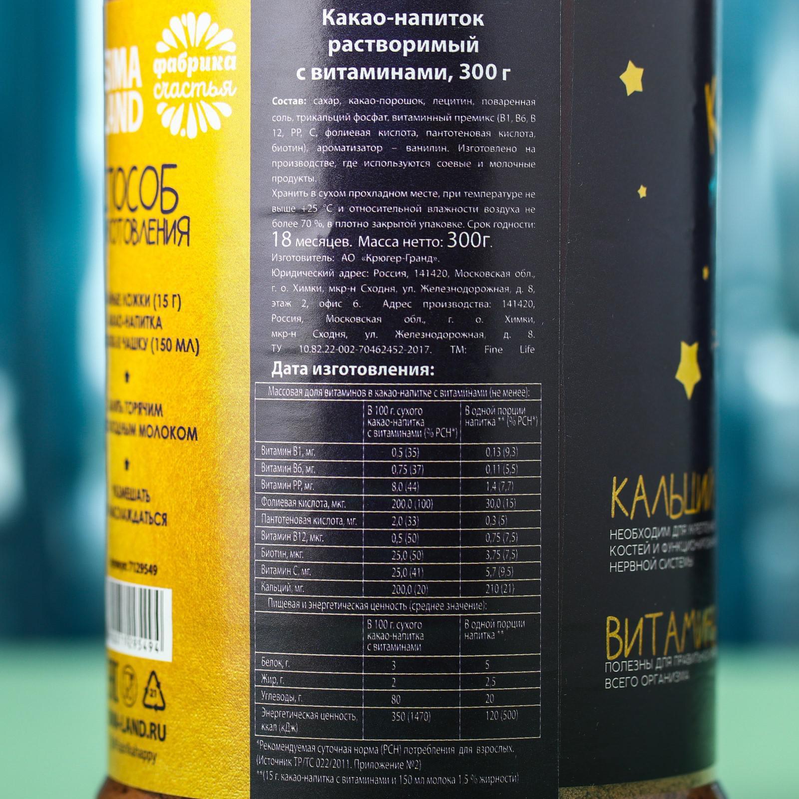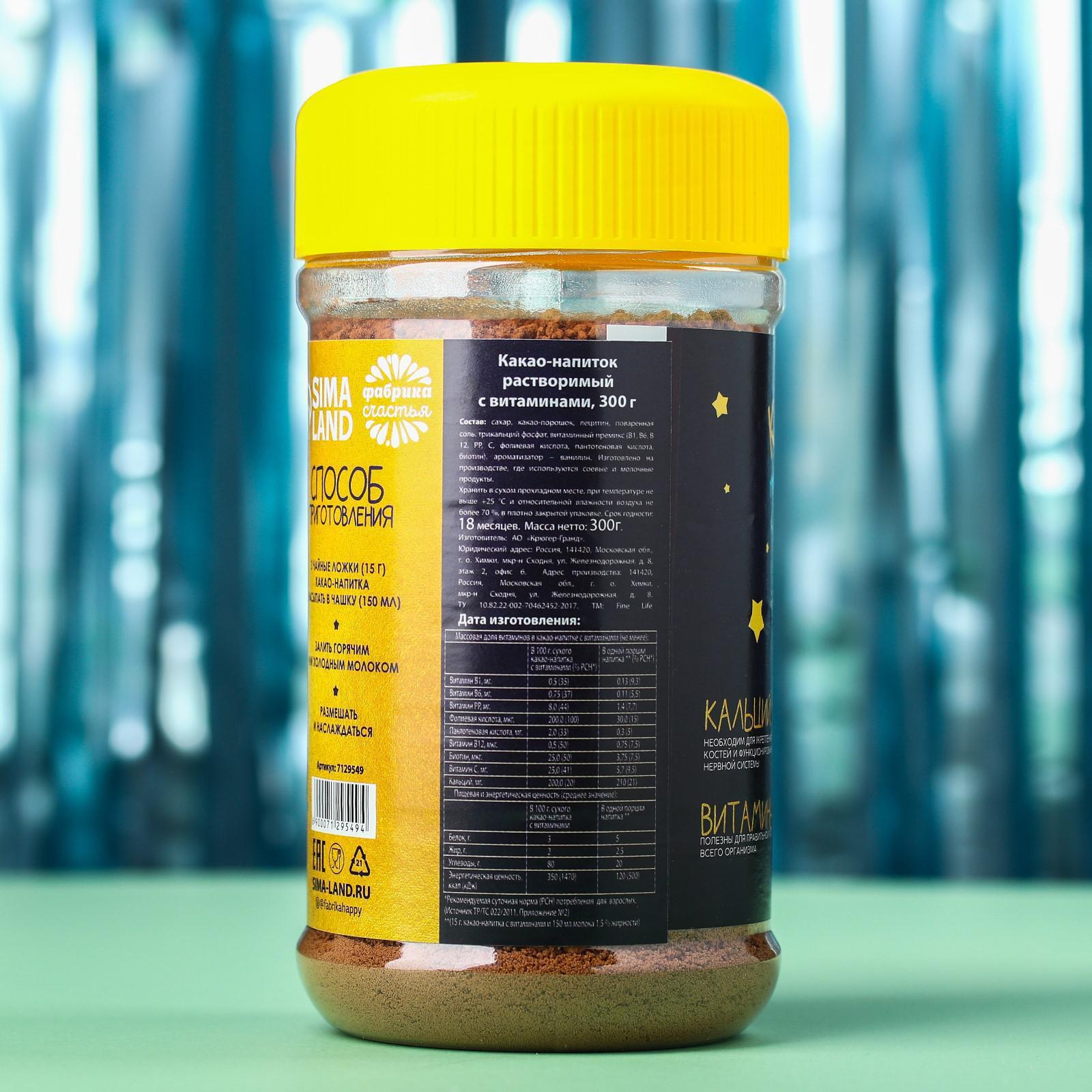 Какао напиток «Растай в объятьях» растворимый с витаминами, 300 г. 7129549