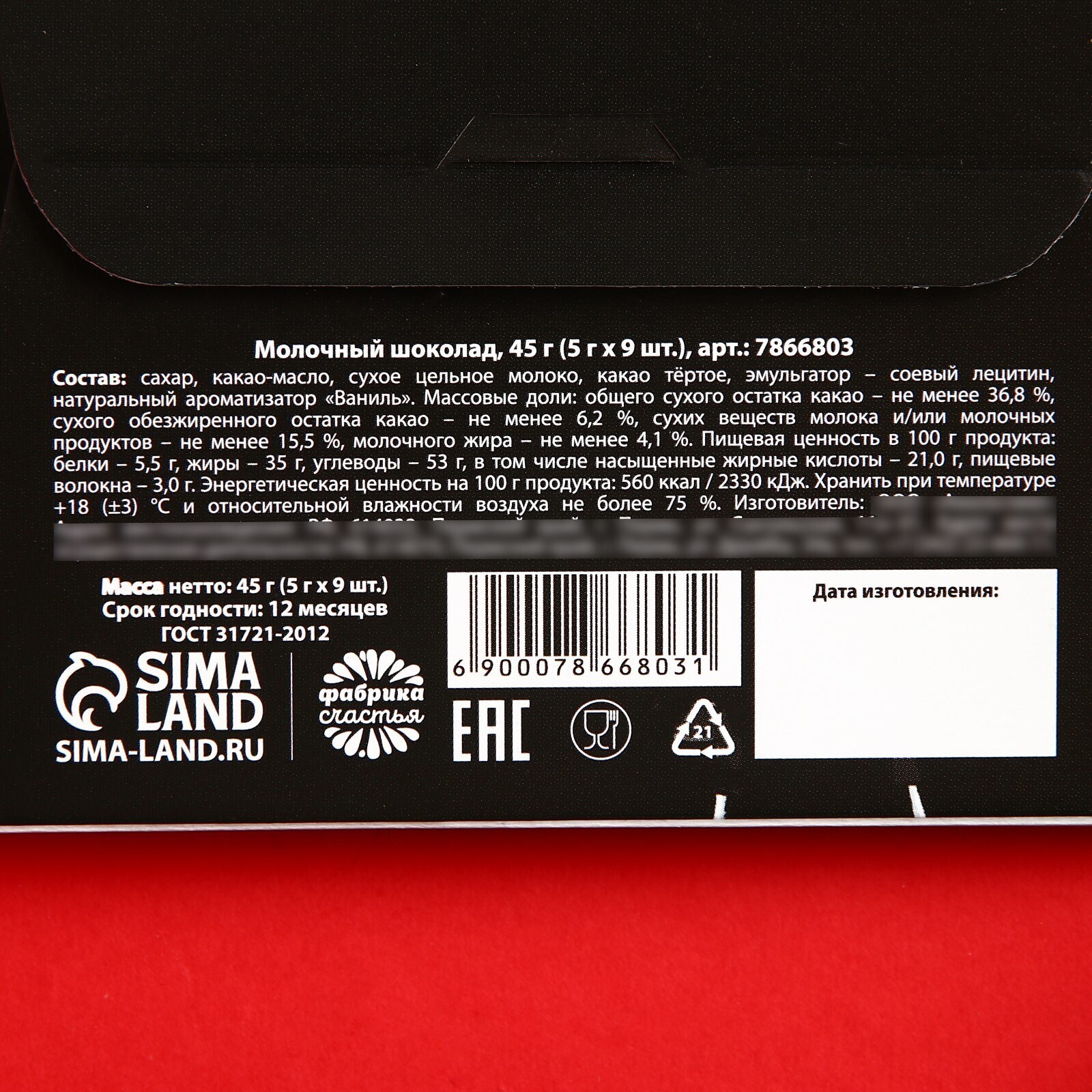 Подарочный молочный шоколад «8 причин», 5 г. x 9 шт. 7866803