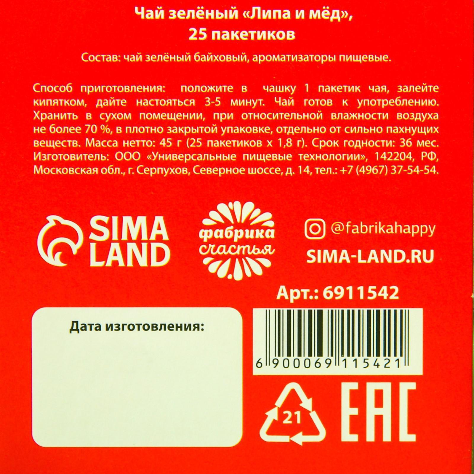 Чай зелёный «Желаю в новом году перестать пить без меня», вкус: липа и мёд, 25 пакетиков, 45 г. 6911542