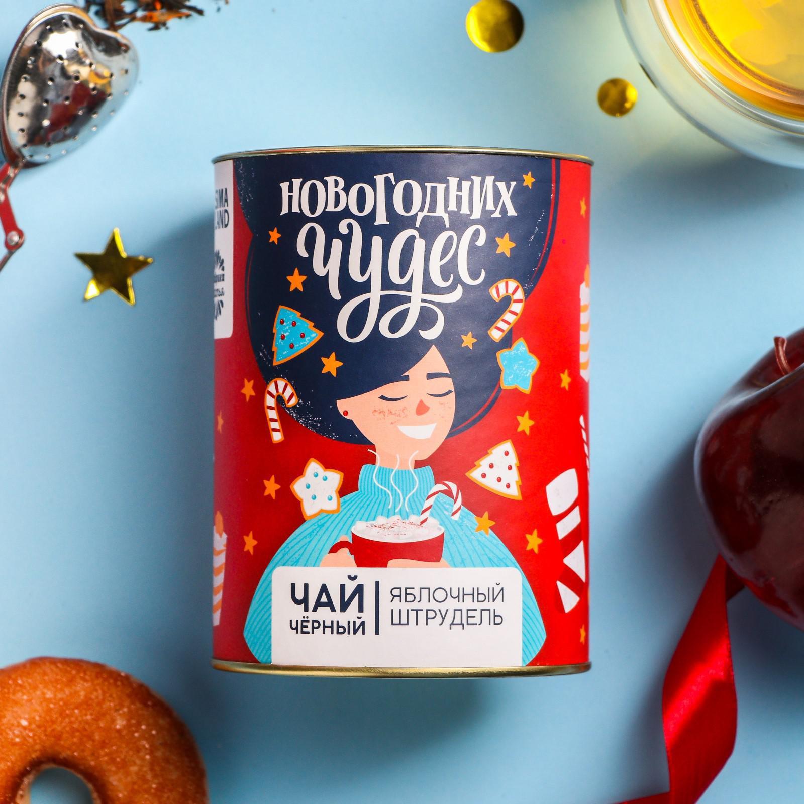 Чай чёрный в тубусе «Новогодних чудес», вкус: яблочный штрудель, 100 г 6928114