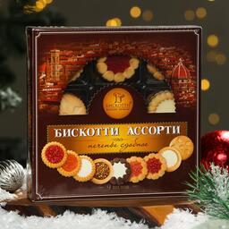 Набор сдобного печенья Бискотти Ассорти из девяти видов печенья порадует всех любительниц сладкого. Продукция упакована в презентабельно оформленную коробочку. Идеальный подарочный вариант.