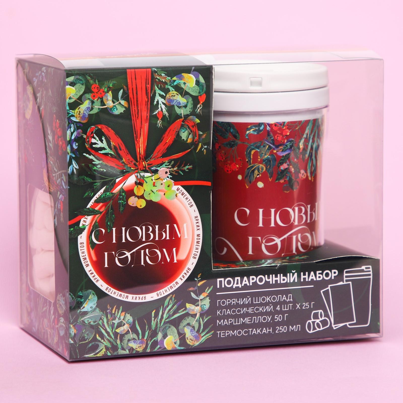 Подарочный набор «С Новым годом!»: горячий шоколад 25 г х 4 шт., маршмеллоу 50 г., термостакан 250 мл. 7763402