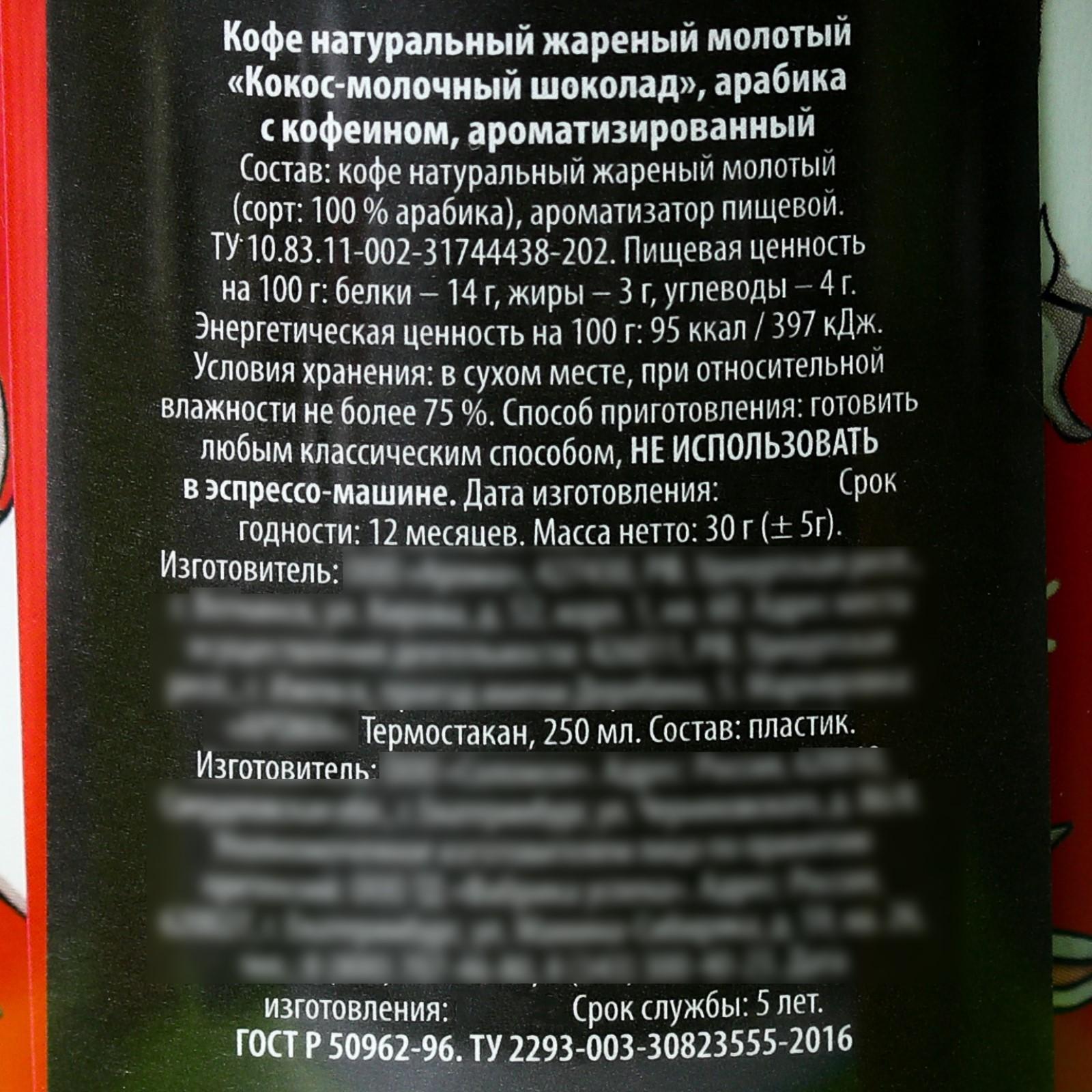 Кофе «Блестящего года» в термостакане, вкус: кокос-молочный шоколад, 30 г. 9095944