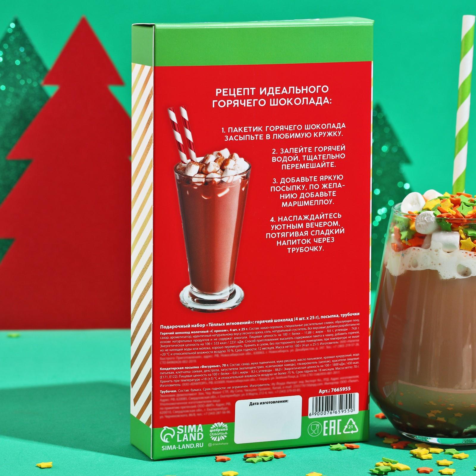 Подарочный набор «Теплых мнгновений»: горячий шоколад «С орехом» (4 шт. x 25 г), посыпка 70 г., трубочки 7665955