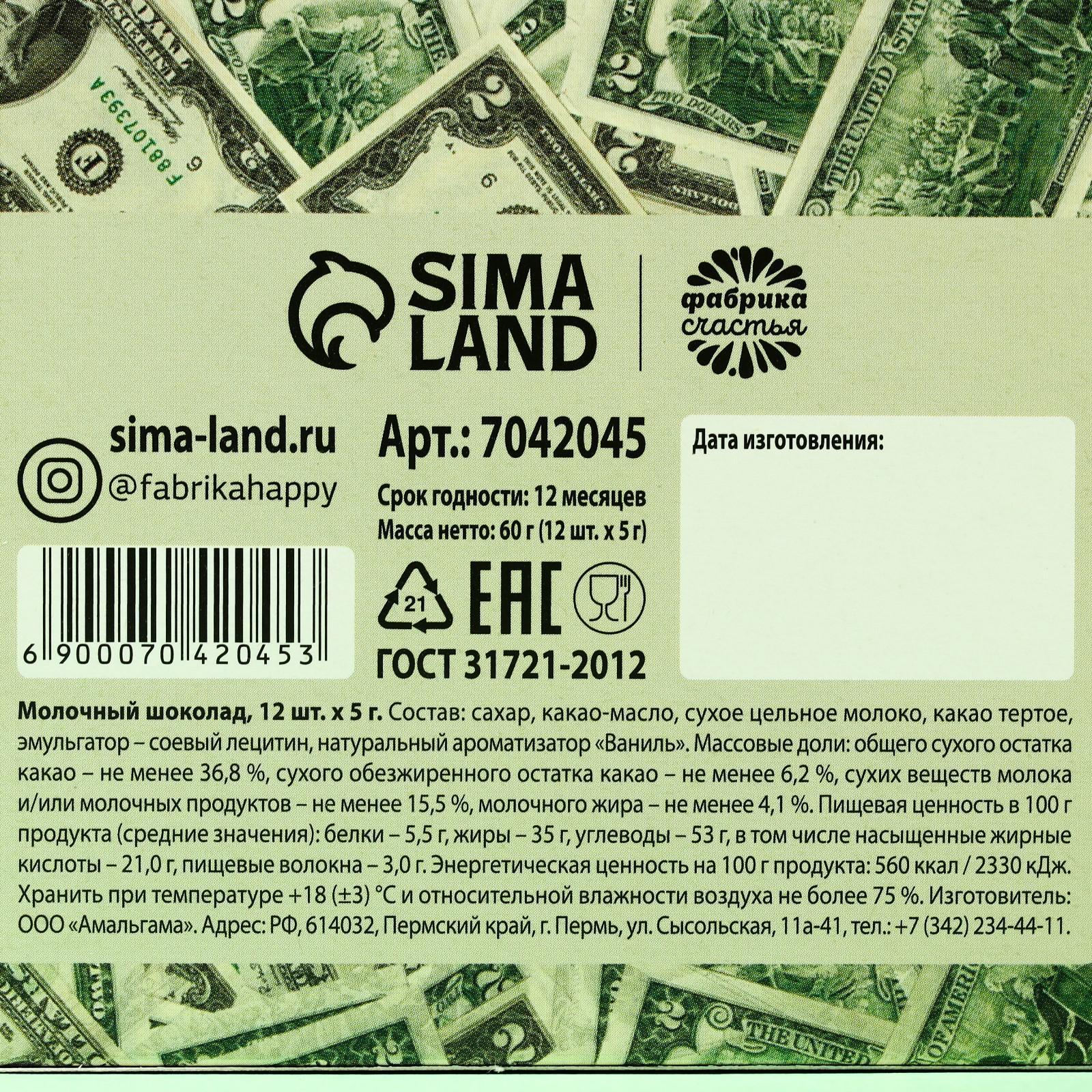 Подарочный молочный шоколад «Новогодний запас валюты», 5 г. x 12 шт. 7042045