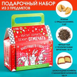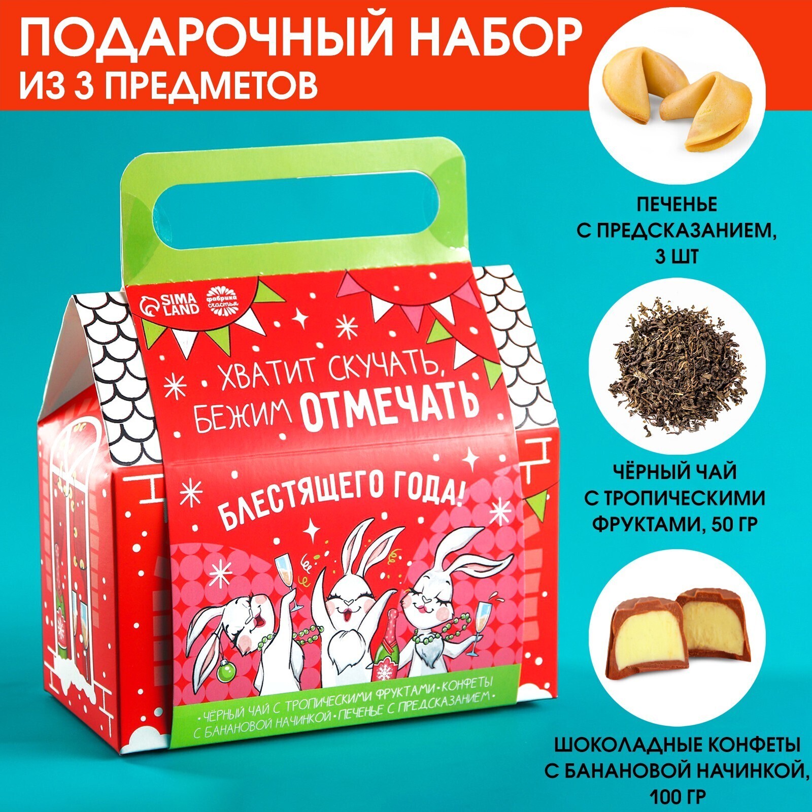 Набор в коробке домике «Волшебных моментов», чай чёрный с тропическими фруктами 50 г., печенье с предсказанием 3 шт., конфеты с кремовой начинкой 100 г. 9062215