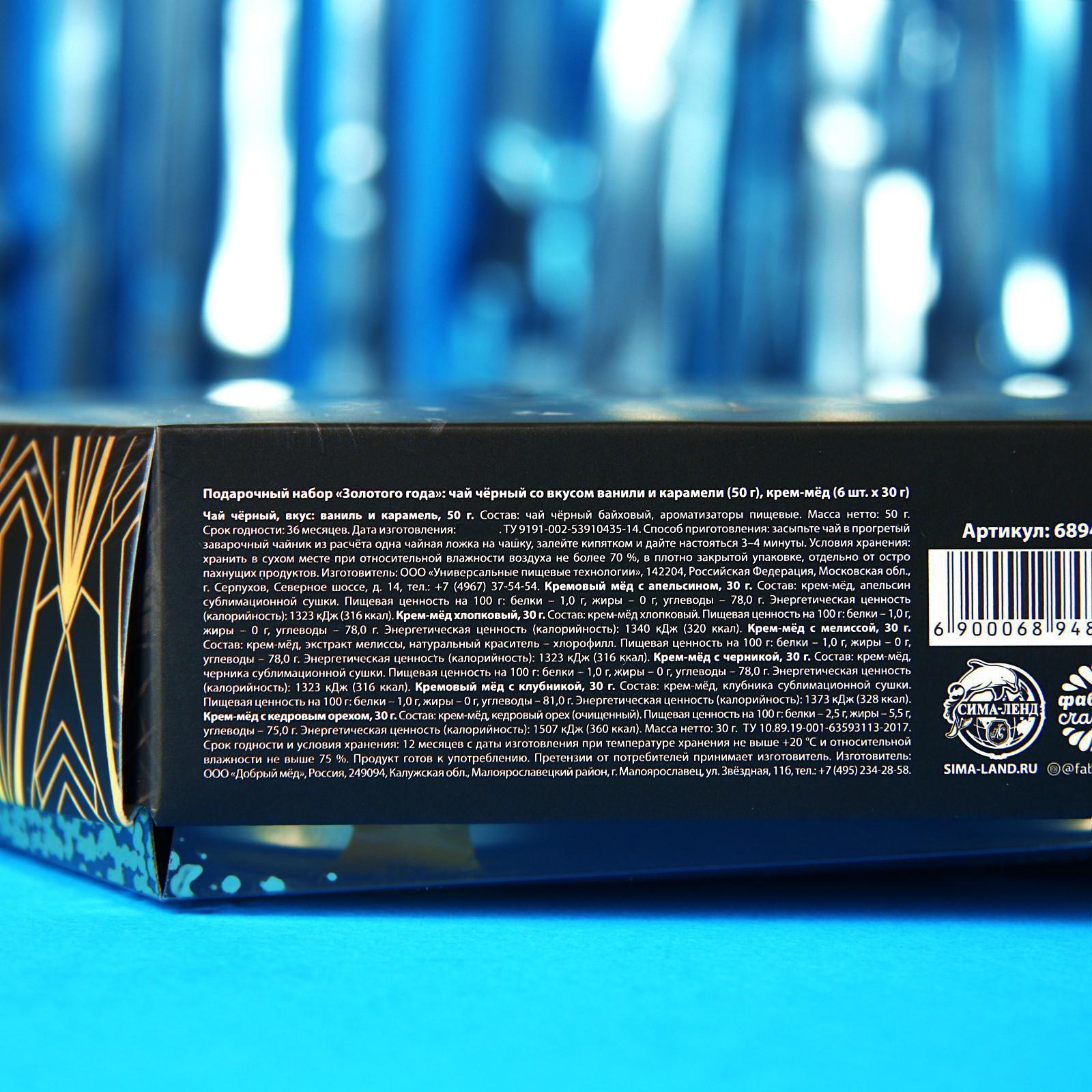 Подарочный набор «Золотого года»: чай с ванилью и карамелью 50 г., крем-мёд (6 шт. x 30 г.) 6894823