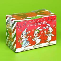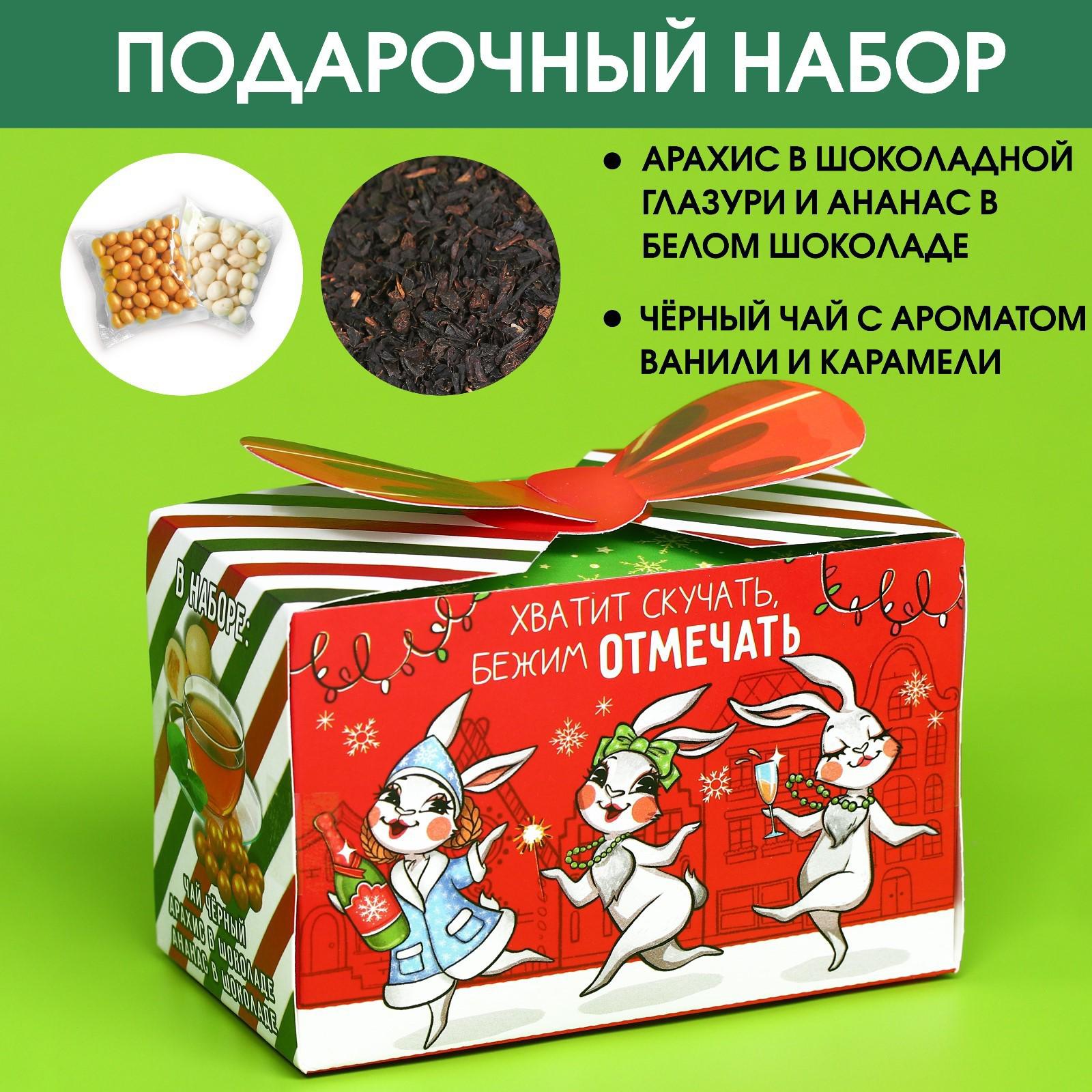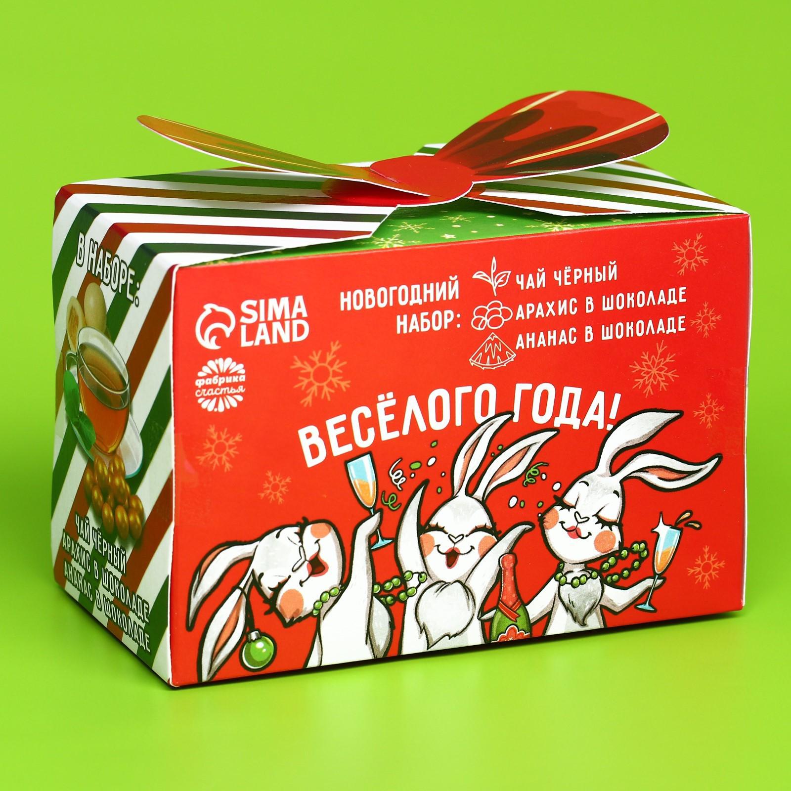 Набор в коробке «Веселого года»: чай чёрный ваниль и карамель 50 г., арахис в шоколадной глазури 100 г., ананас в белом шоколаде 100 г. 9035875