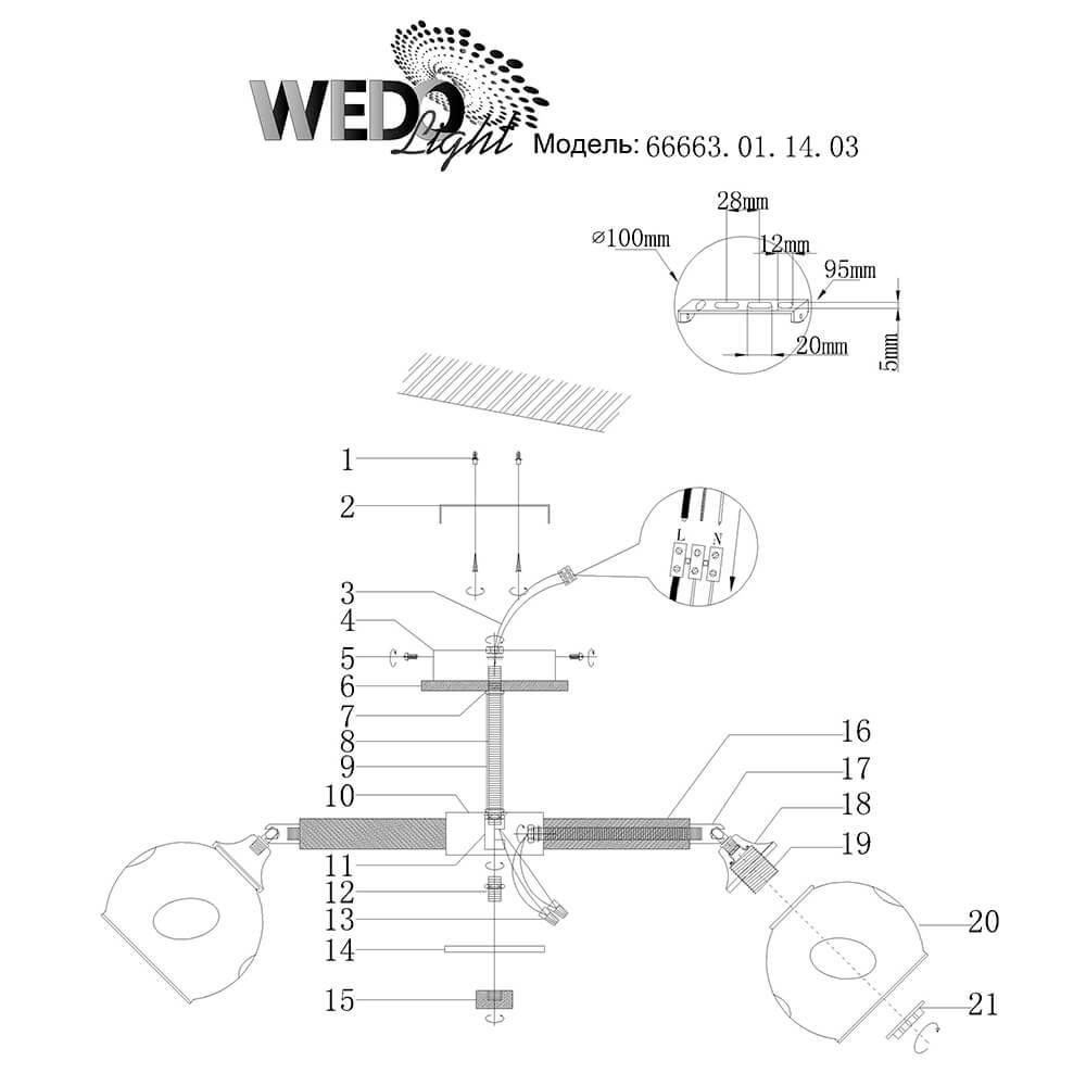 - Место установки На потолок