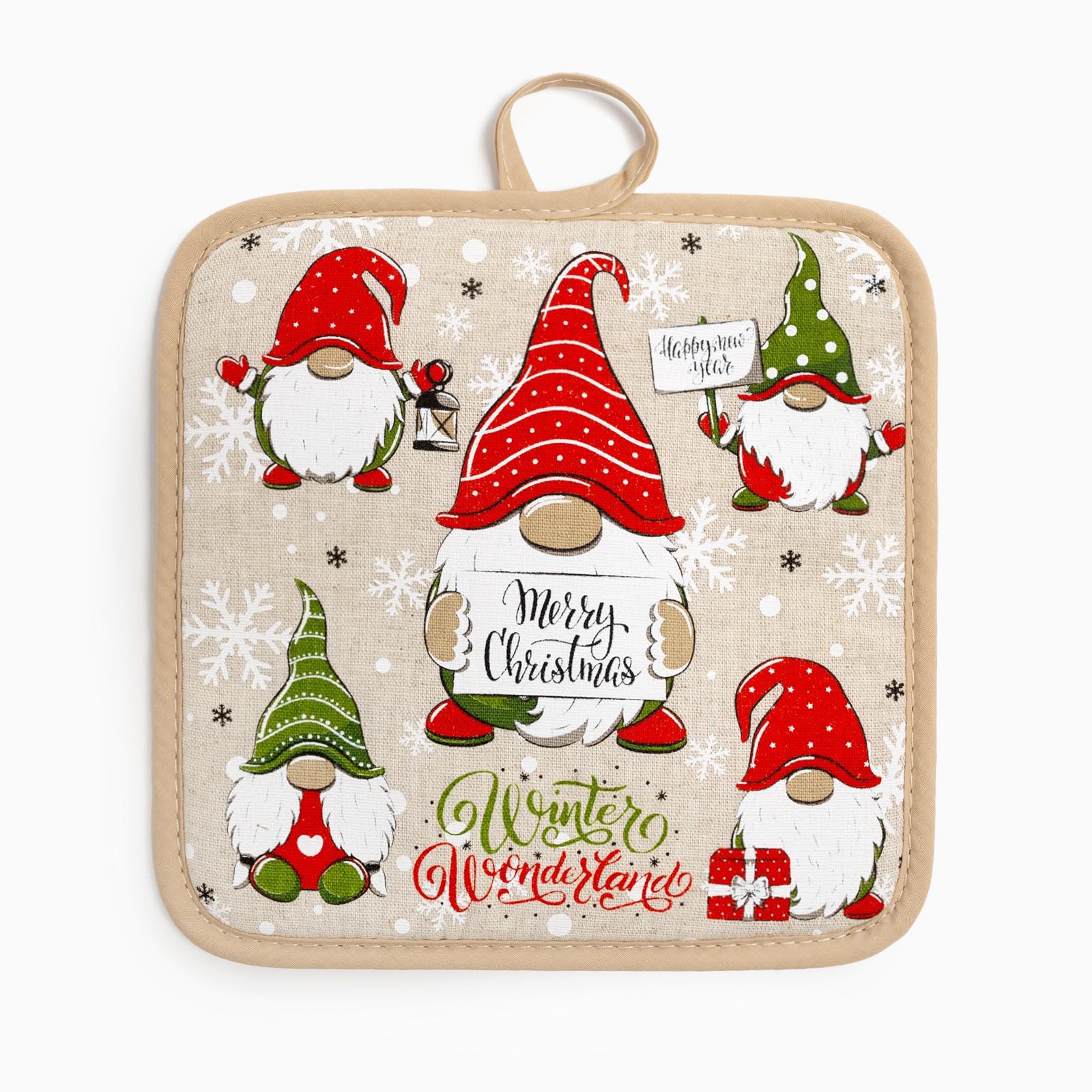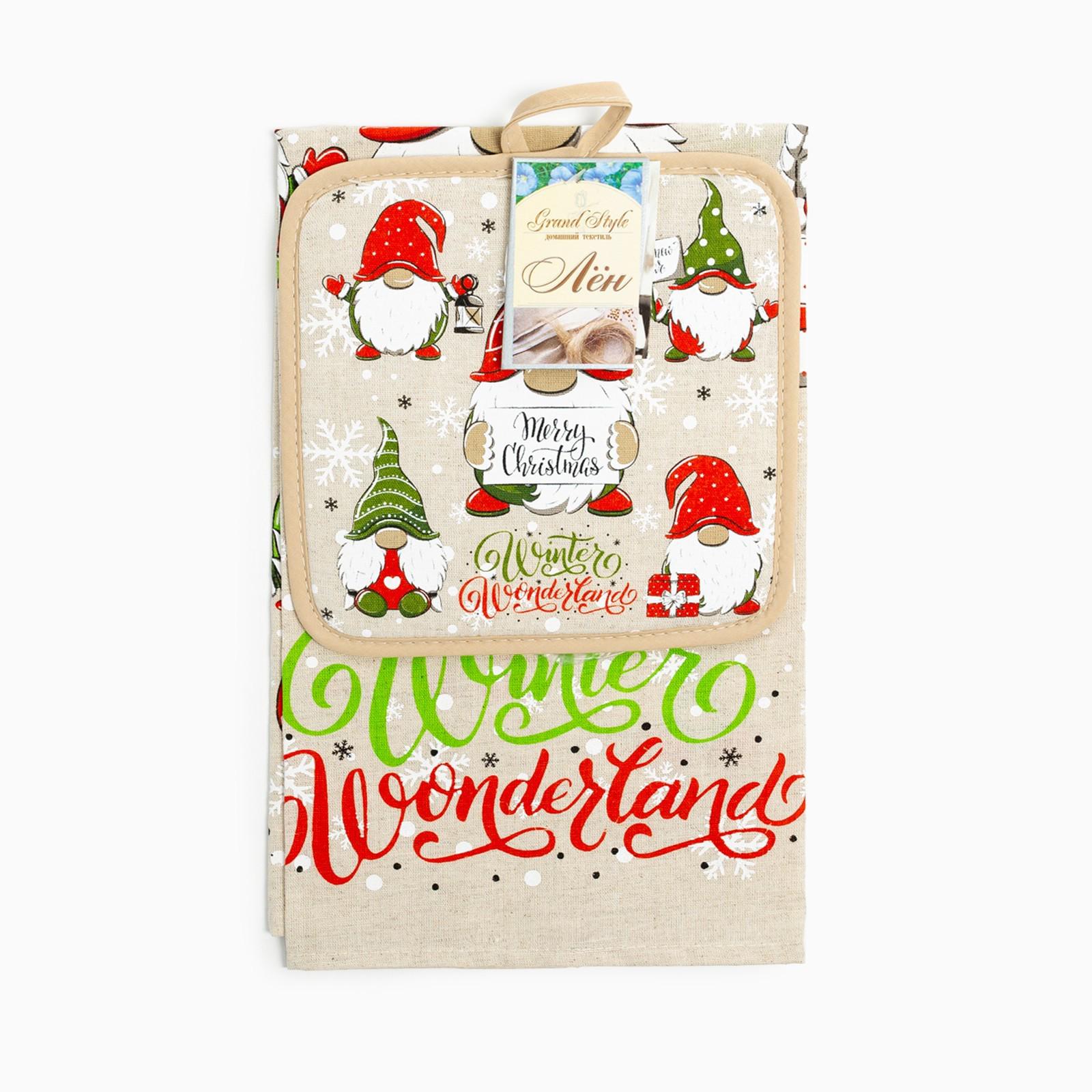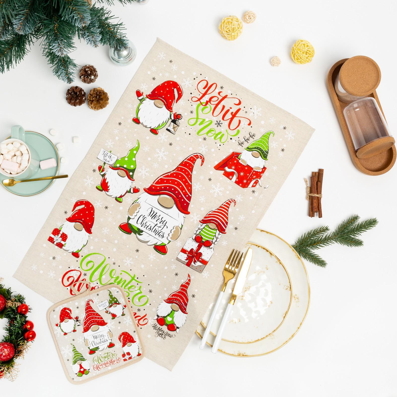 Кухонный набор «Гномы» (полотенце 39х60+прихватка 18х18) состав: 50% лён, 50% хлопок, 160г/м² 9038667