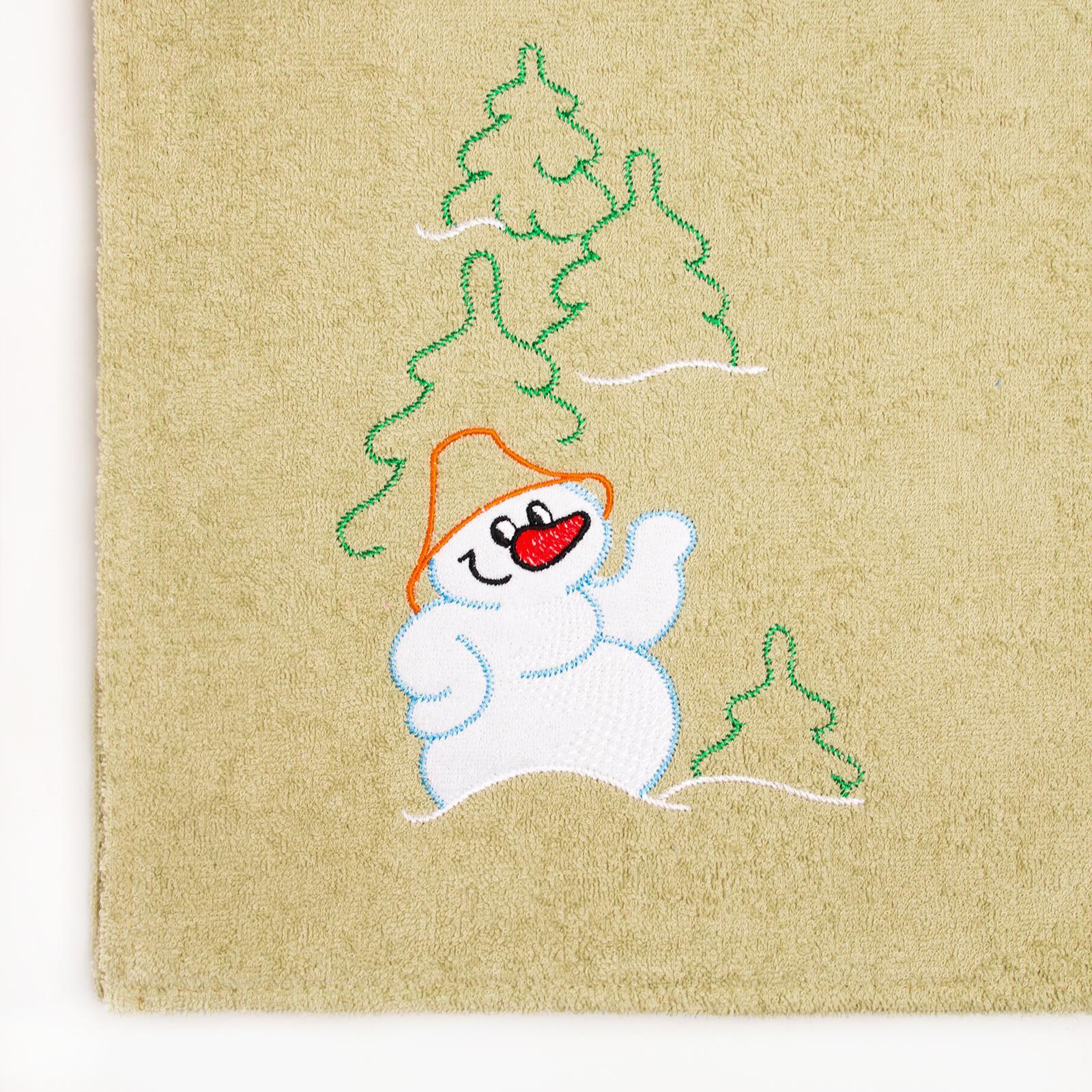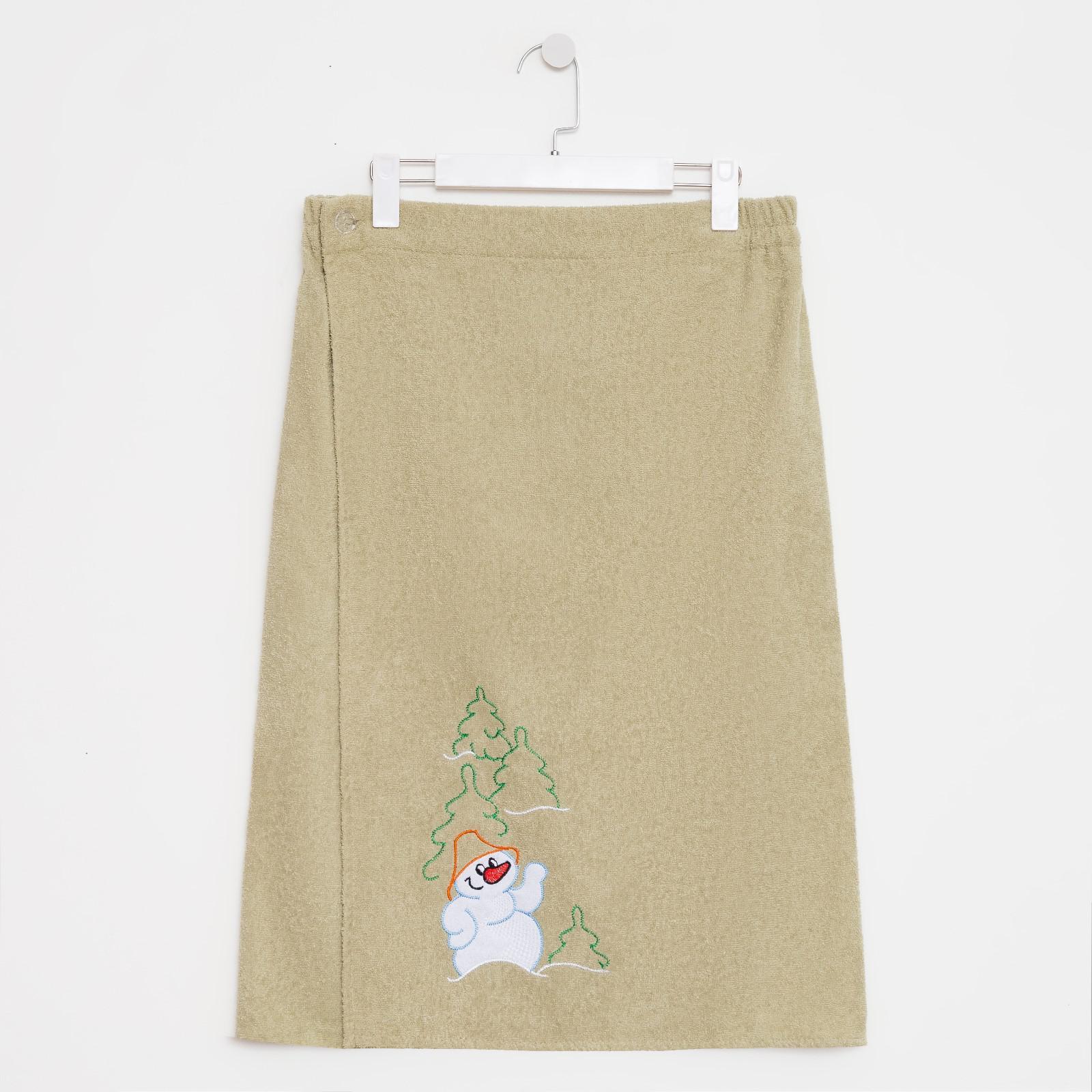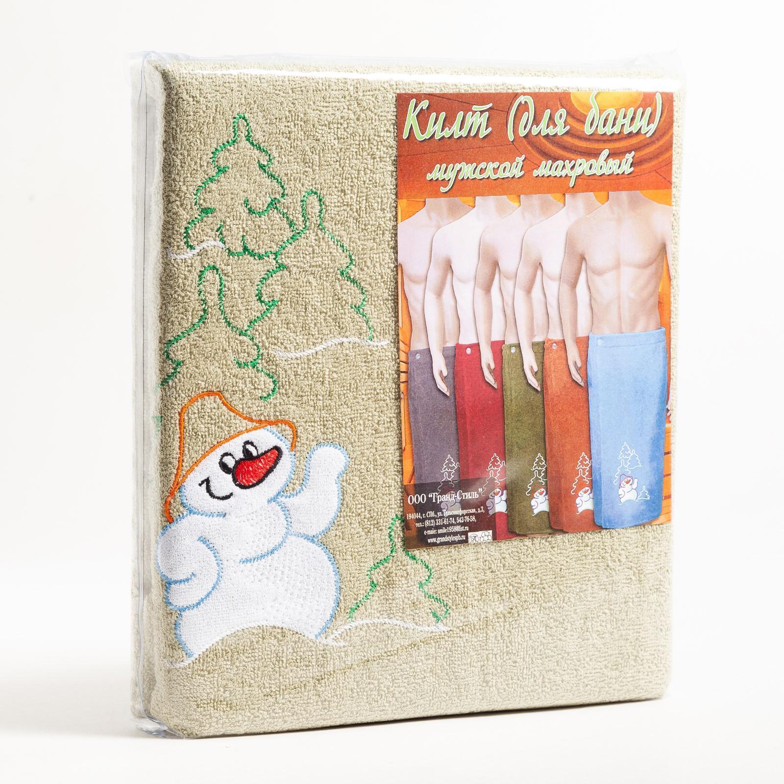Килт мужской, 70х150, цвет олива, вышивка Снеговик, махра 300г/м², 100 % хлопок 7064592