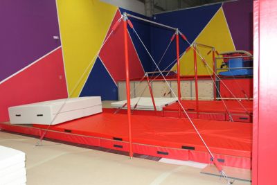 Поверхность составляется из 4-х матов, которые смягчают нагрузку на конечности и позвоночник. Общая зона 24 м2.