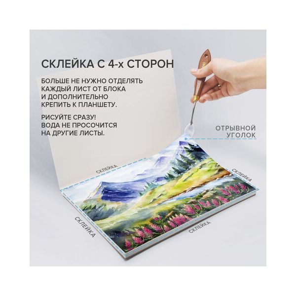 Бесплатная доставка В наличии 1 280 руб. 113240, Планшет для акварели ХЛОПОК 100%, 300 г, 190х270 мм, скл...