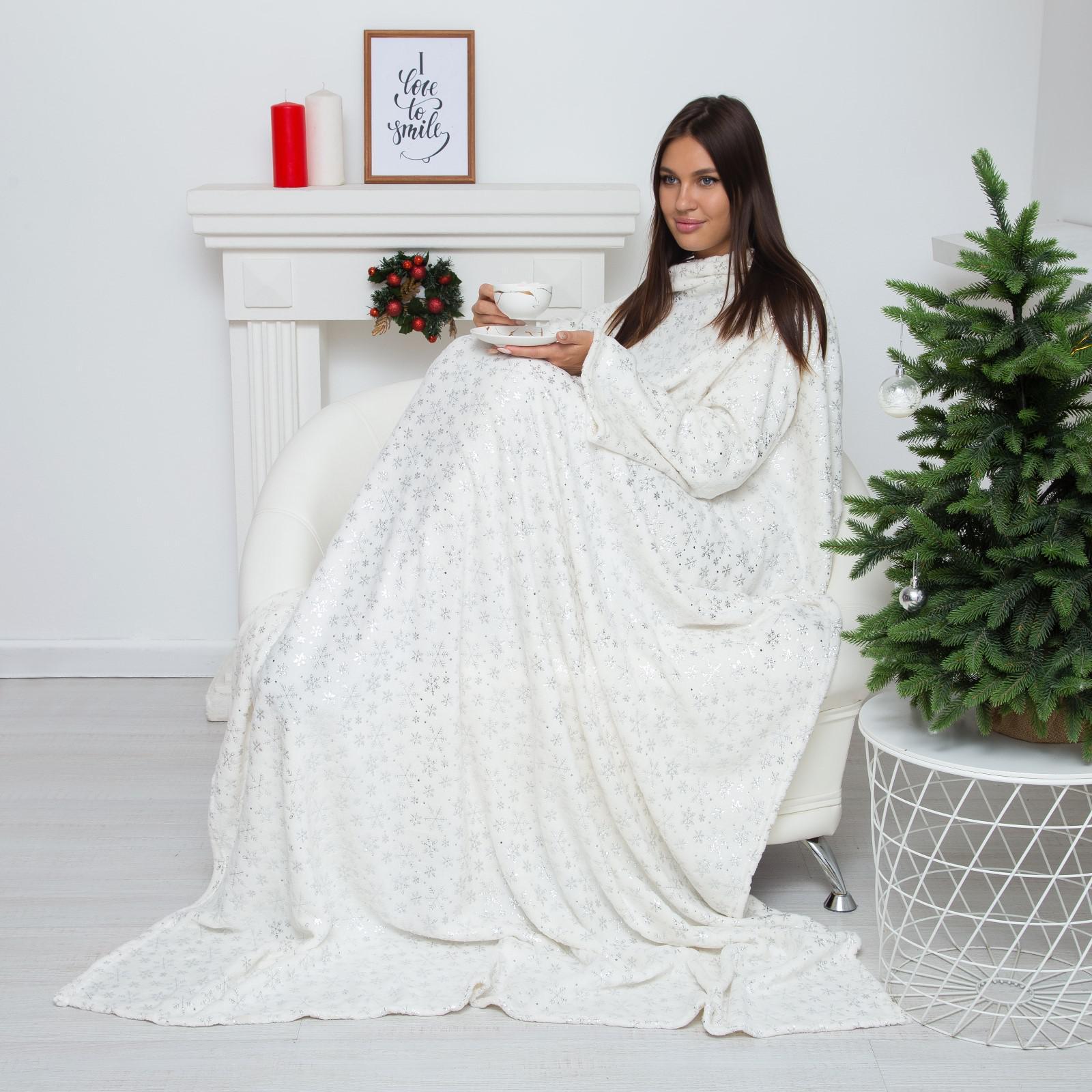Плед с рукавами Этель "Серебряные снежинки" 150*200 см,100% п/э, корал-флис 220 гр/м2 7155687