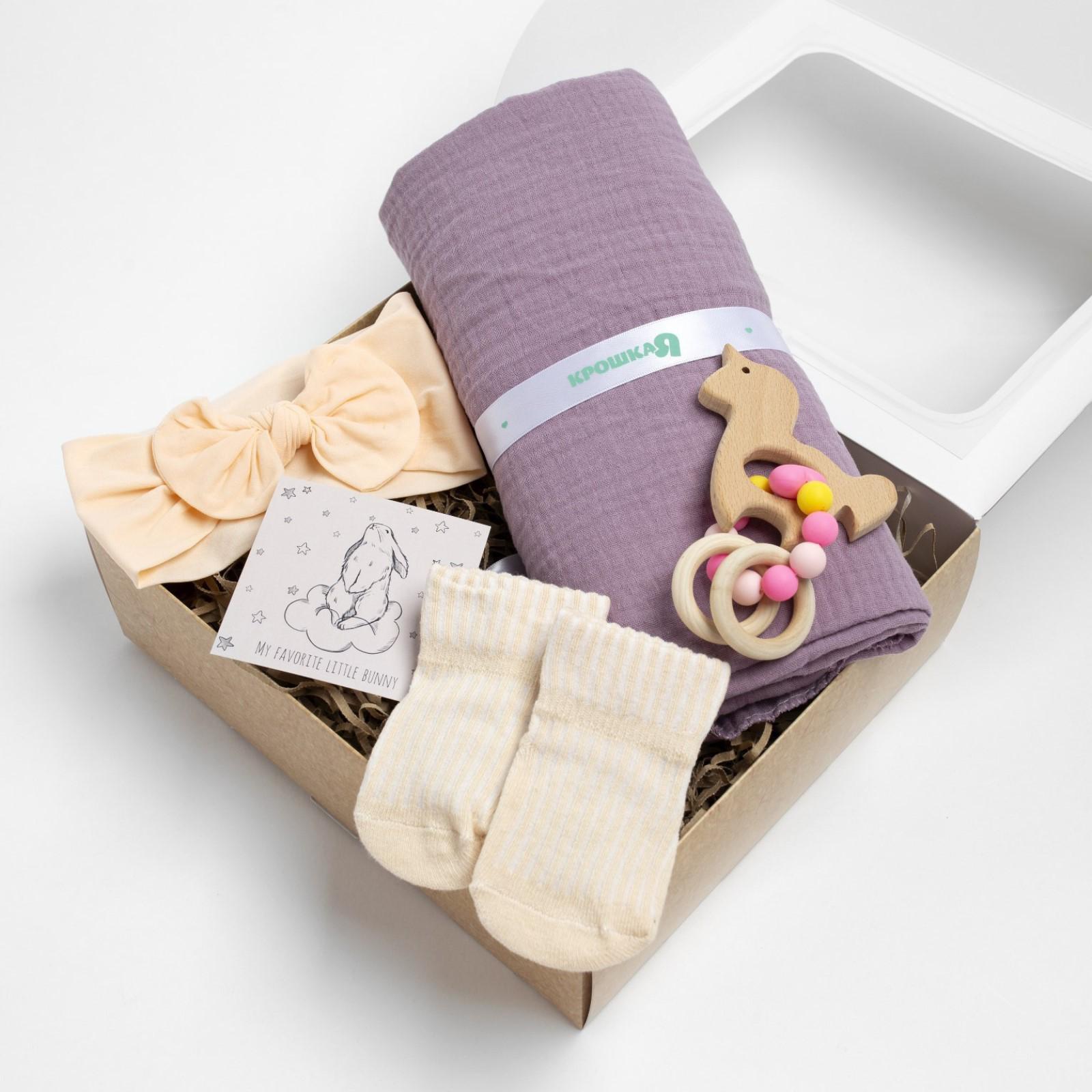 Подарочный набор Крошка Я "My favorite little bunny", пелёнка 100х130 см и аксессуары 7829392